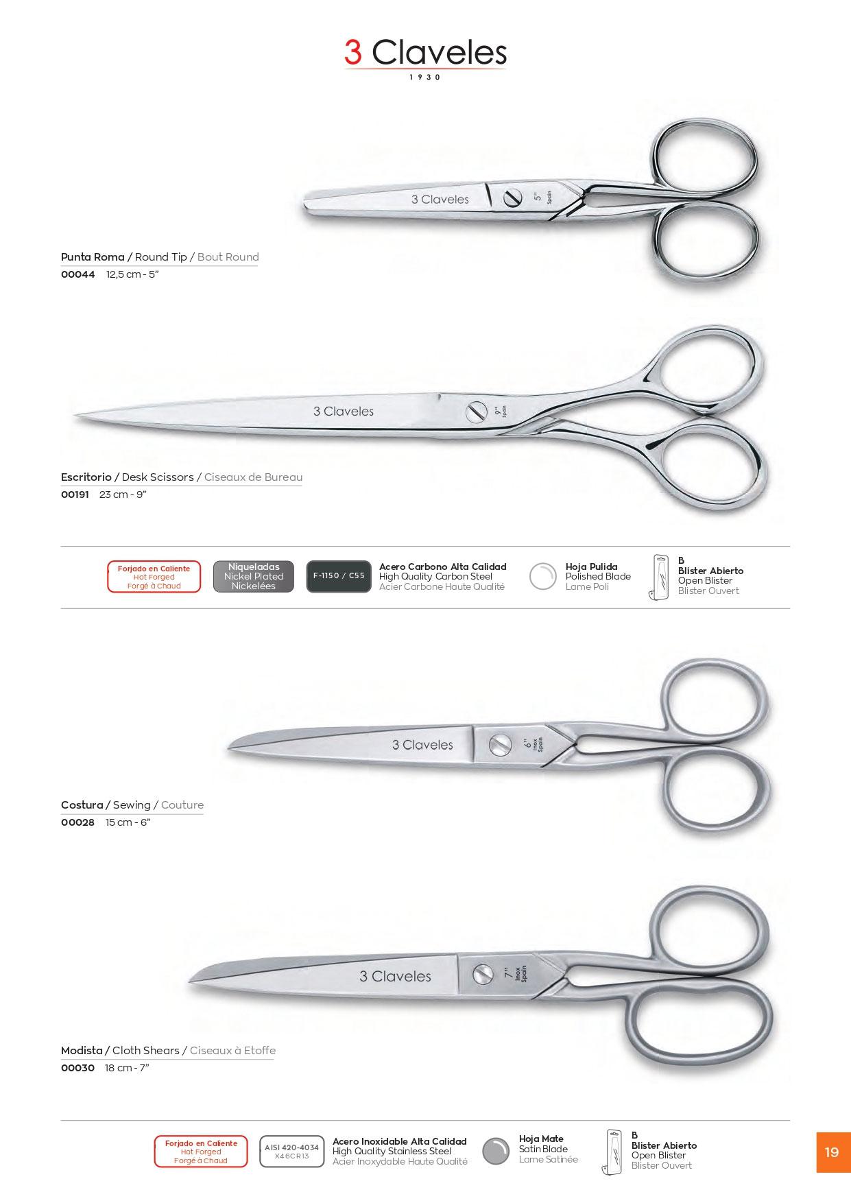 Tijeras de costura 3 Claveles de acero carbono 12,5 cm
