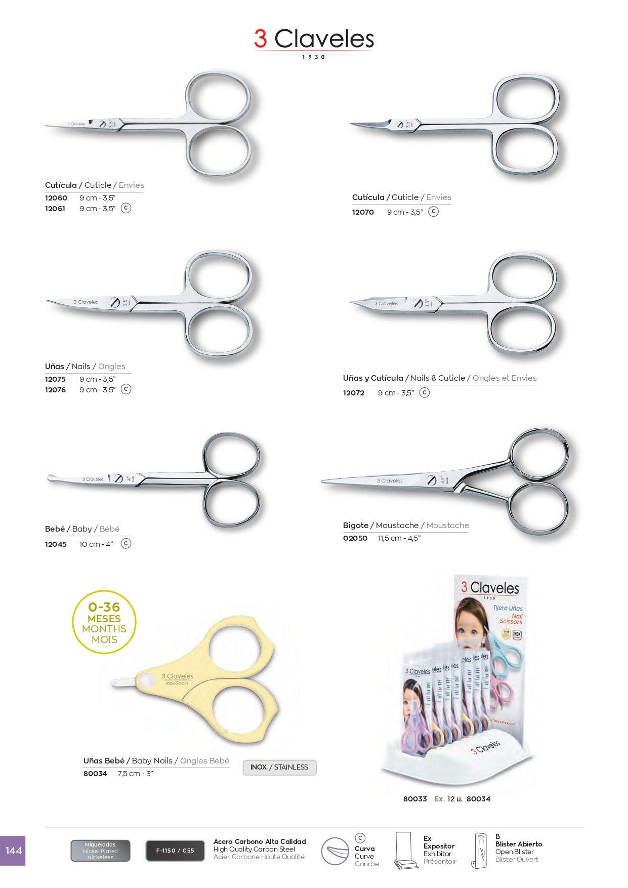 Tijeras Niqueladas en Acero carbono forjado en caliente. Nariz, Bolsillo, Bigote, Manicura, Cuticula, Uñas y Pieles, Uñas.