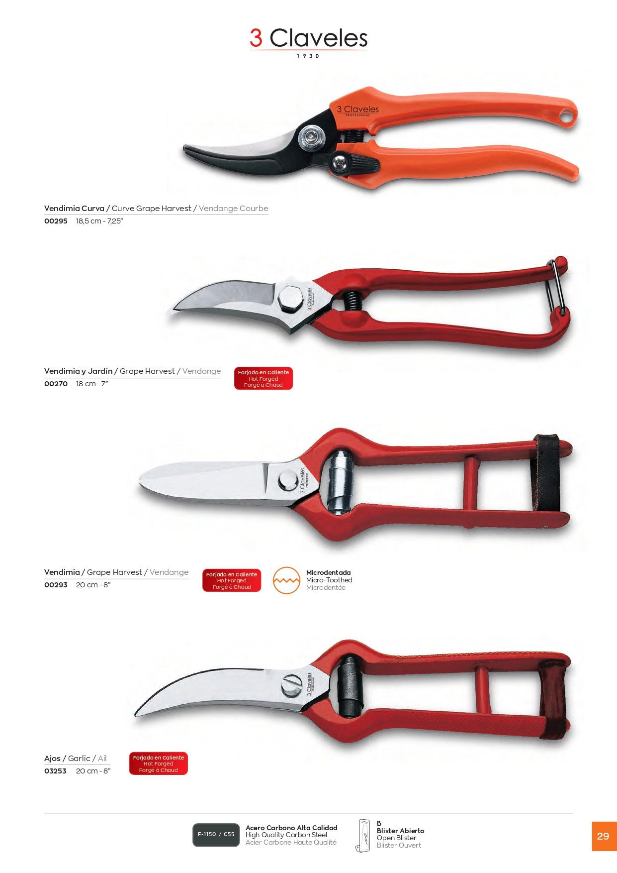 Tijeras vendimia, Tijeras cortapimientos, Tijeras corta ajos, Tijeras jardin. Acero carbono de alta calidad forjado en caliente.