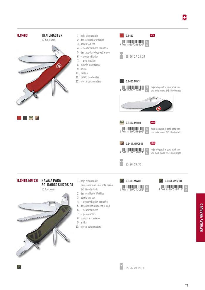 Navaja para soldados suizos 08 Navaja multiusos grande, la última versión de la clásica multiusos Victorinox empleada durante más de 100 años por los soldados suizos. Incluye 10 funciones: