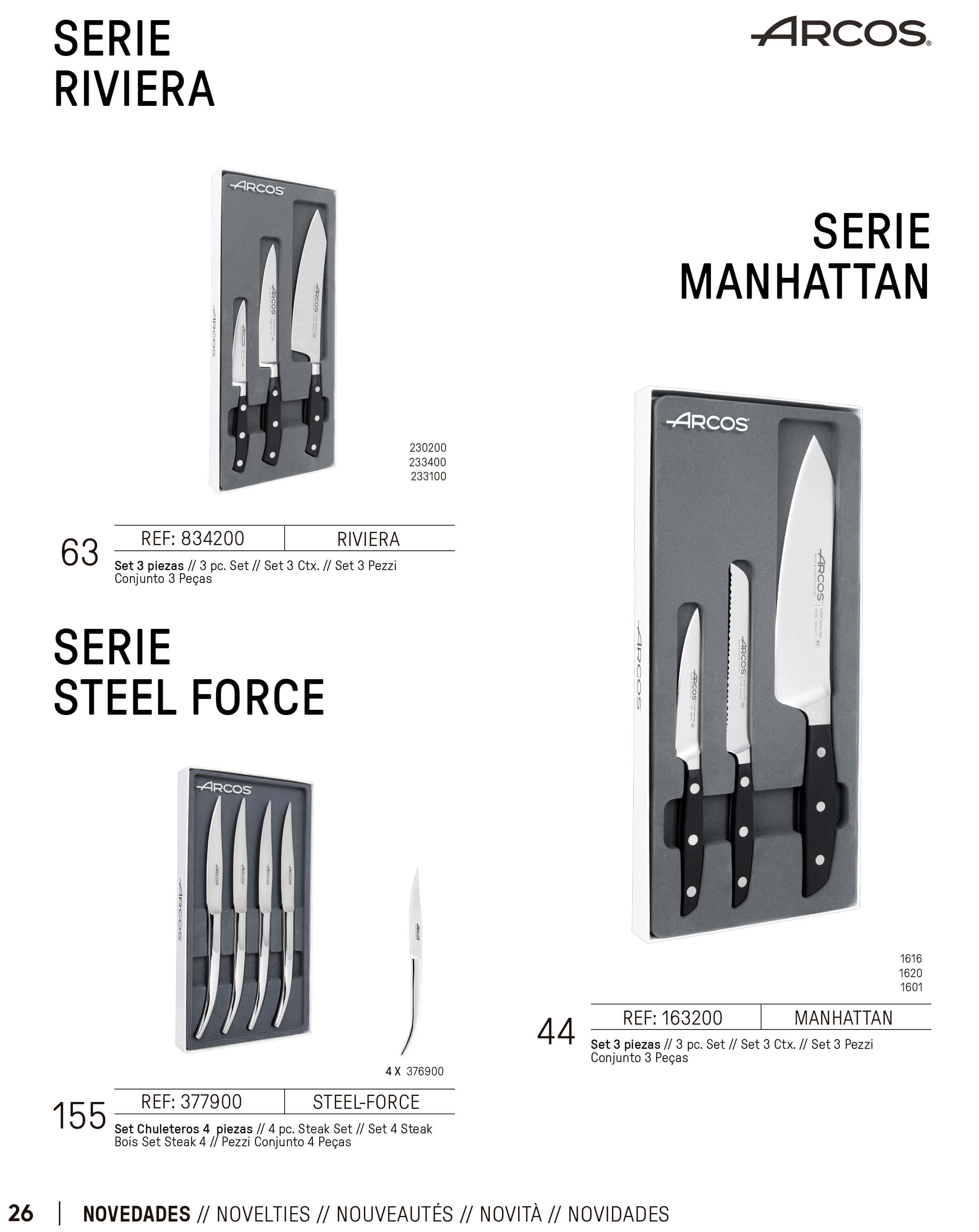 Composed of a set of four steak knives made of stainless steel, both the blade and the handle.