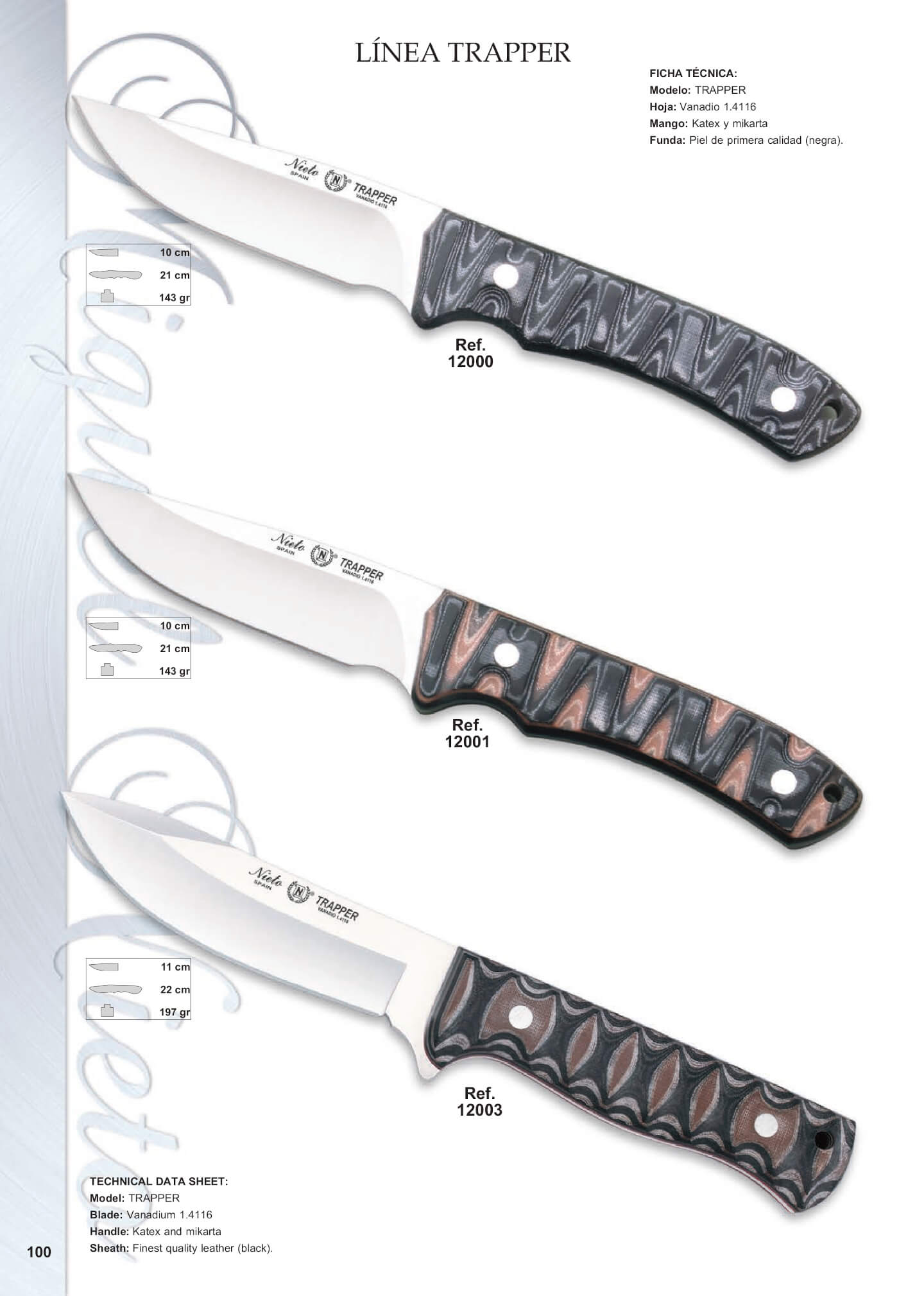 Blade length: 10 cm. Total length: 21 cm. Weight: 143 grs.