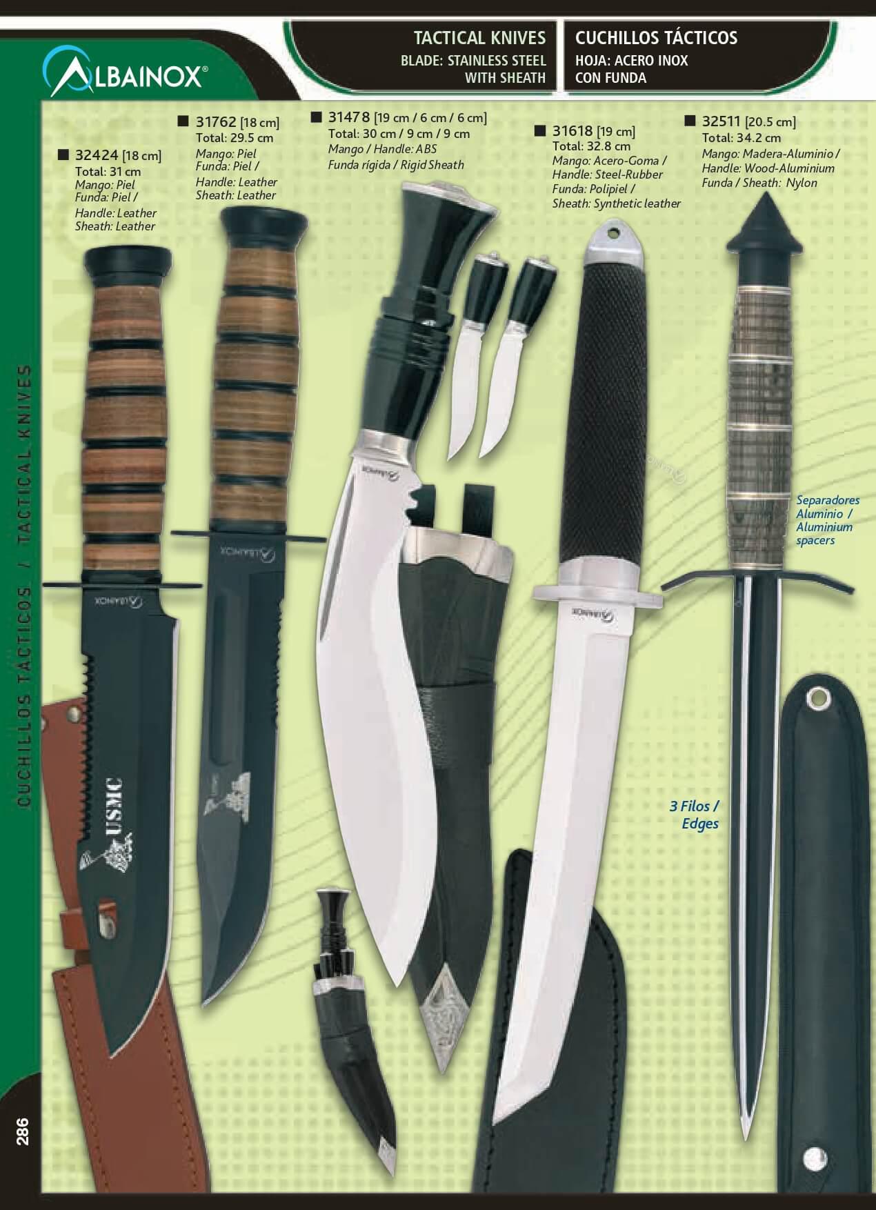 Albainox USMC tactical knife with leather sheath and 18 cm blade