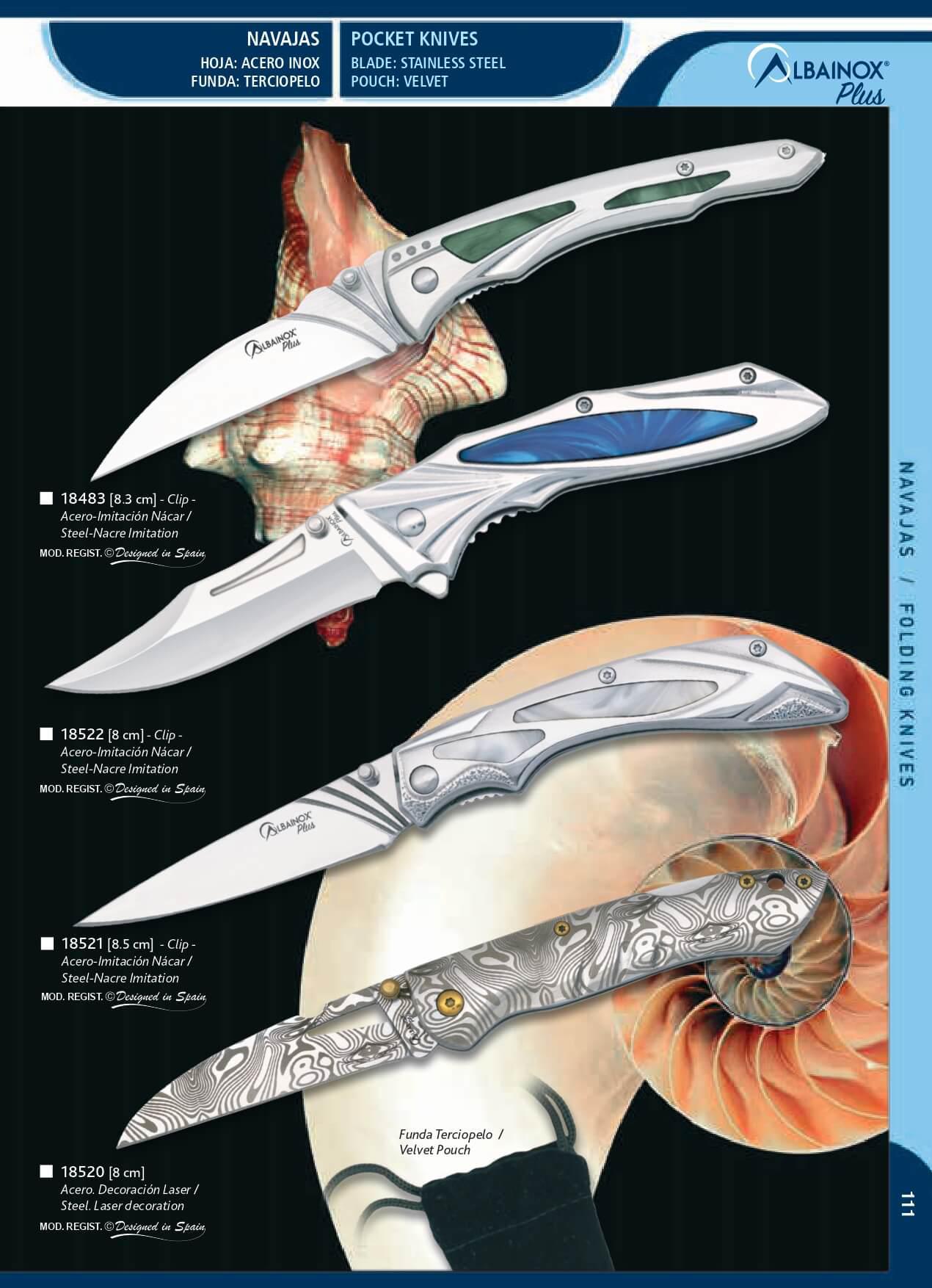 Albainox Plus pocket knives with stainless steel blade and velvet sheath