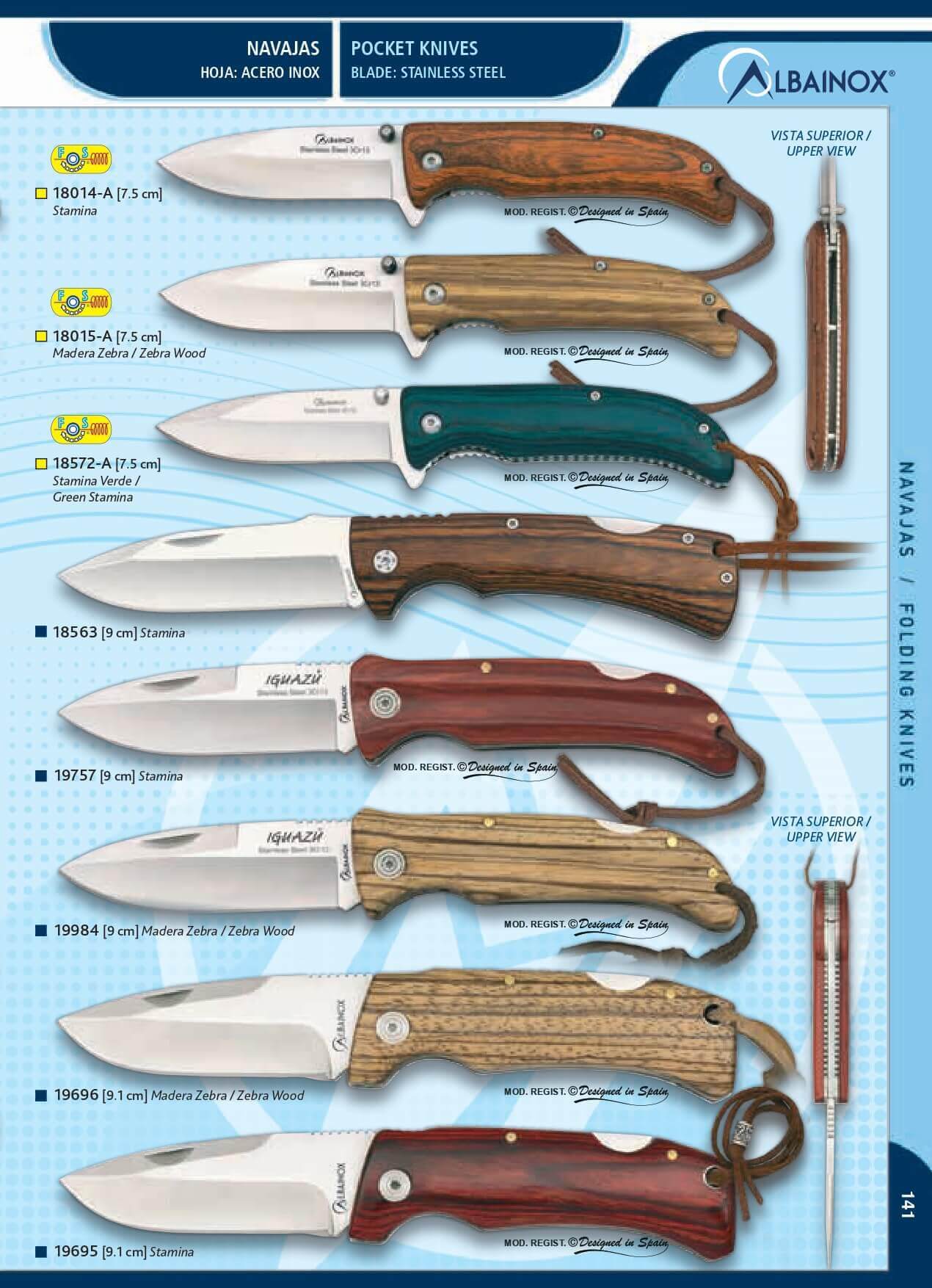 Albainox pocket knife designed in Spain with zebra wood handle, b...