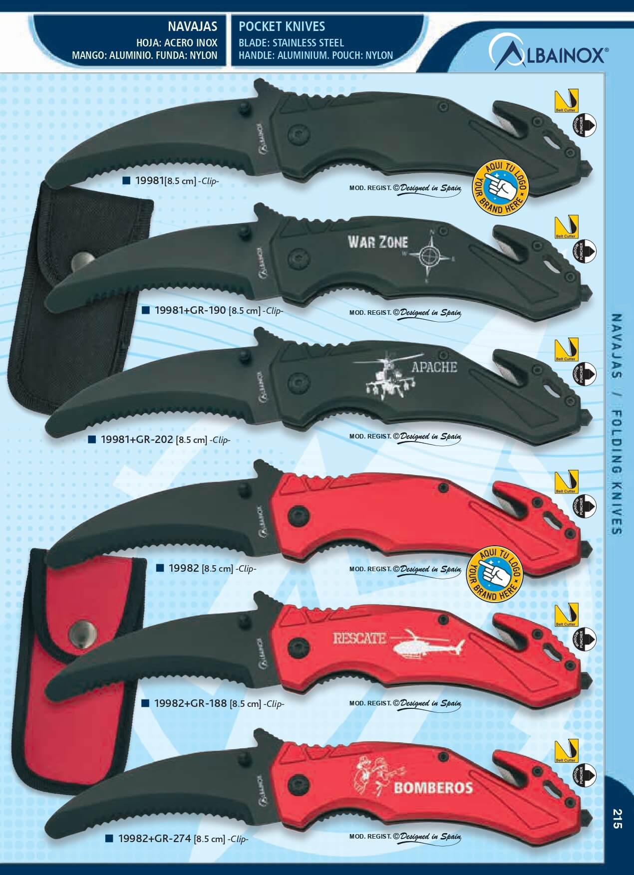 Albainox black safety pocket knife with clip, nylon sheath and 8....