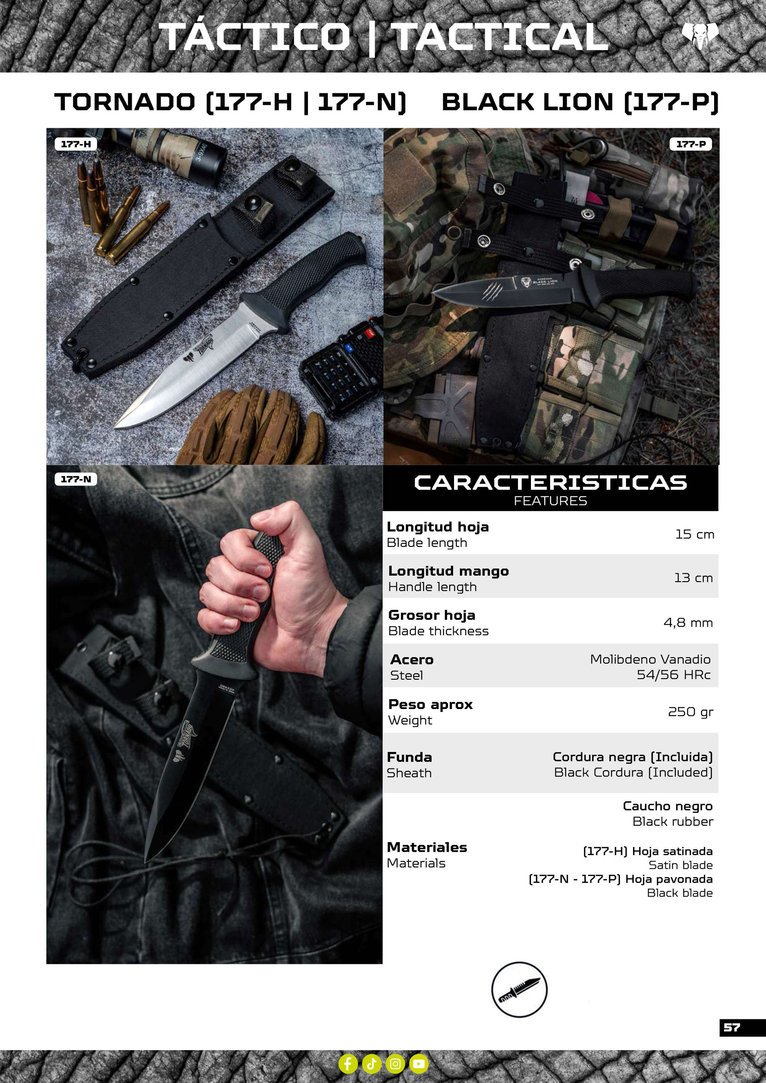 Cudeman TornadoTactical knife with Molybdenum Vanadium steel blade. Black non-slip rubber handle.Blade length: 15 cm. Overall length: 27 cm. Blade thickness: 5 mm. Blade width: 3 cm. Weight: 244 gr. Black cordura sheath.