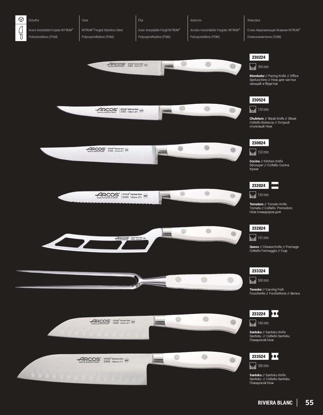 Chef knives Riviera whiteChef knives with NITRUM steel blade and white POM handle
