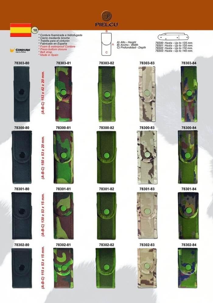 . Knife sheaths with foam and waterproof Cordura, with press-button closure and belt strap. Manufactured in Spain.