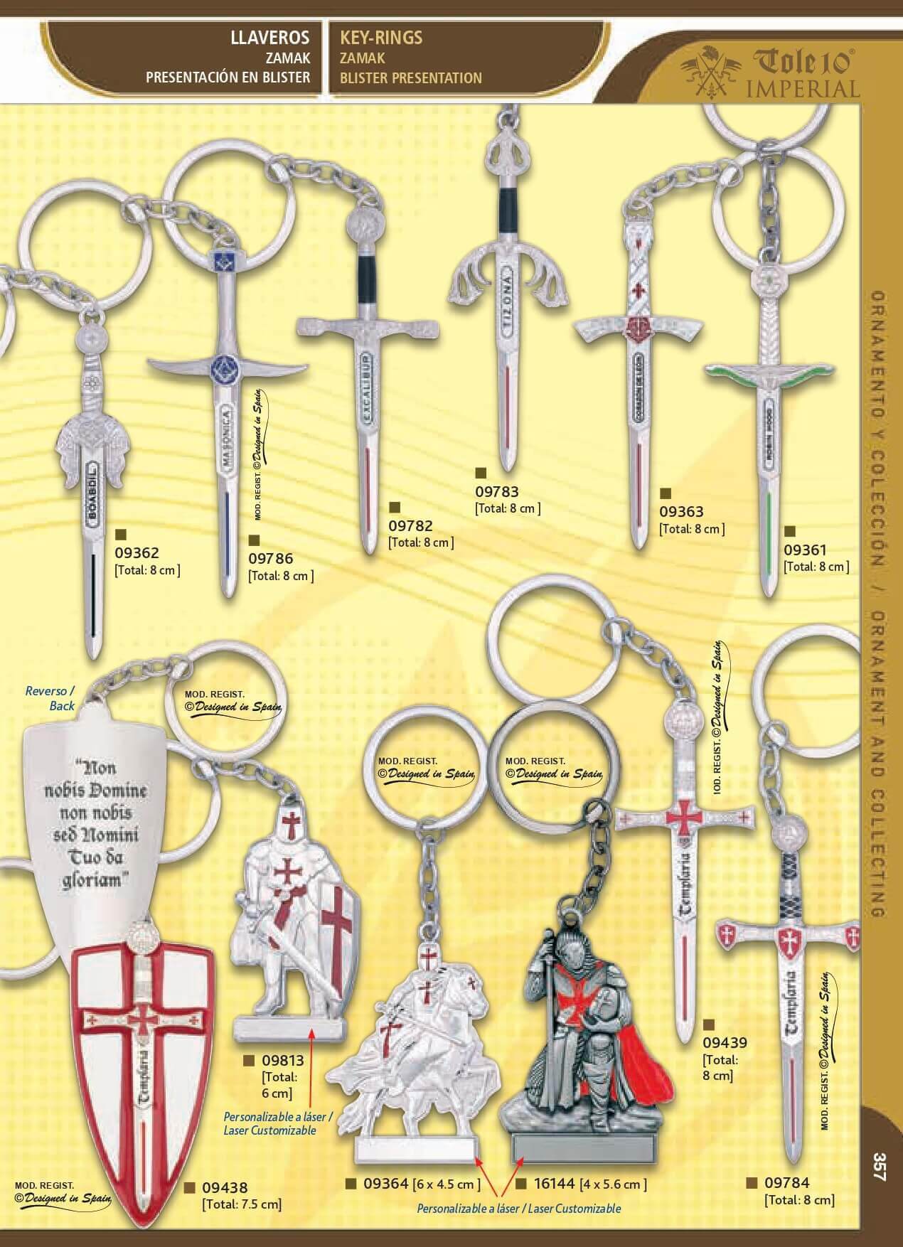 Collection of TOLE10 IMPERIAL key rings made with Zamak.