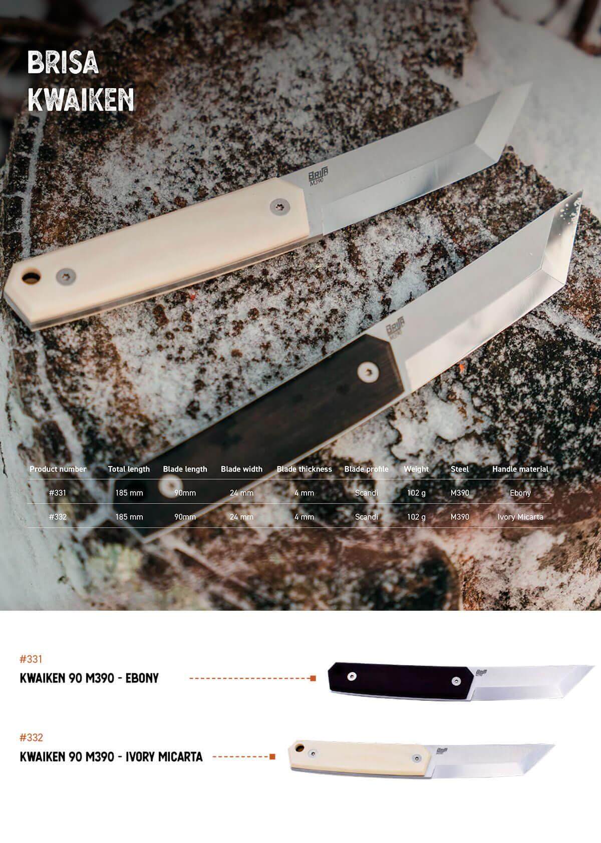 The Brisa Kwaiken 90 M390 knife is a fusion between the traditional Japanese knife and a smooth Finnish design.