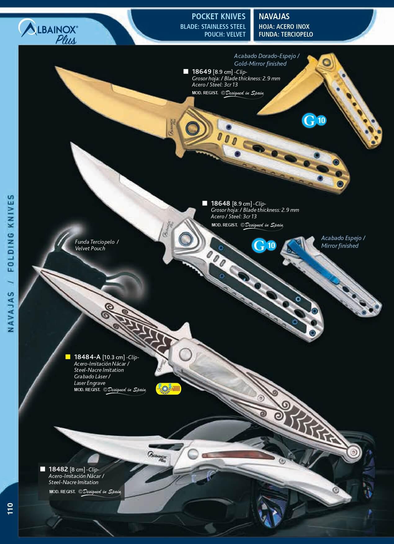 Albainox Plus pocket knives with stainless steel blade and velvet sheath