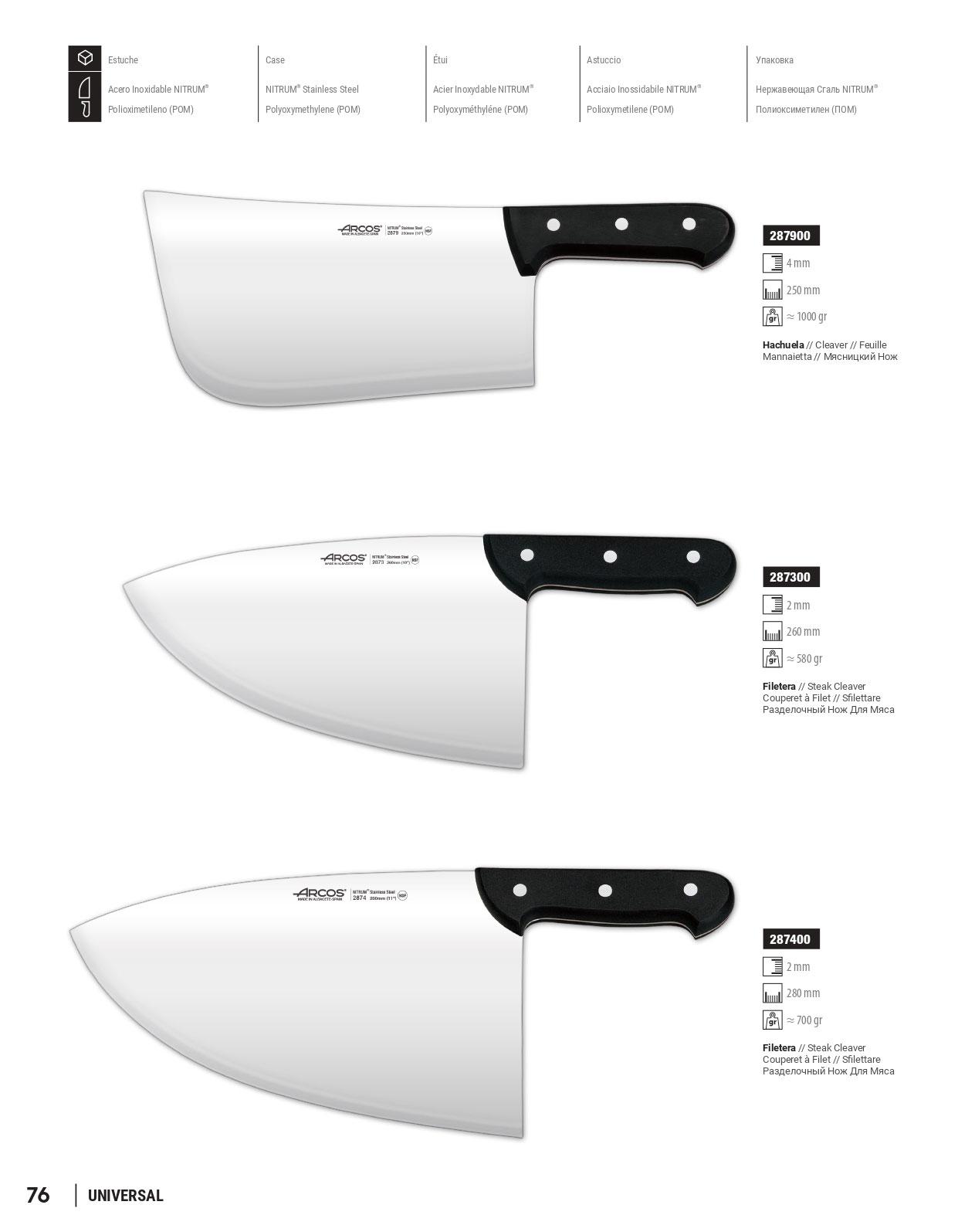 Professional hatchet. NITRUM stainless steel blade. 2 mm thick. 260 and 280 mm. 540 grams and 640 grams (depending on model). POM Mango. UNIVERSAL series.
