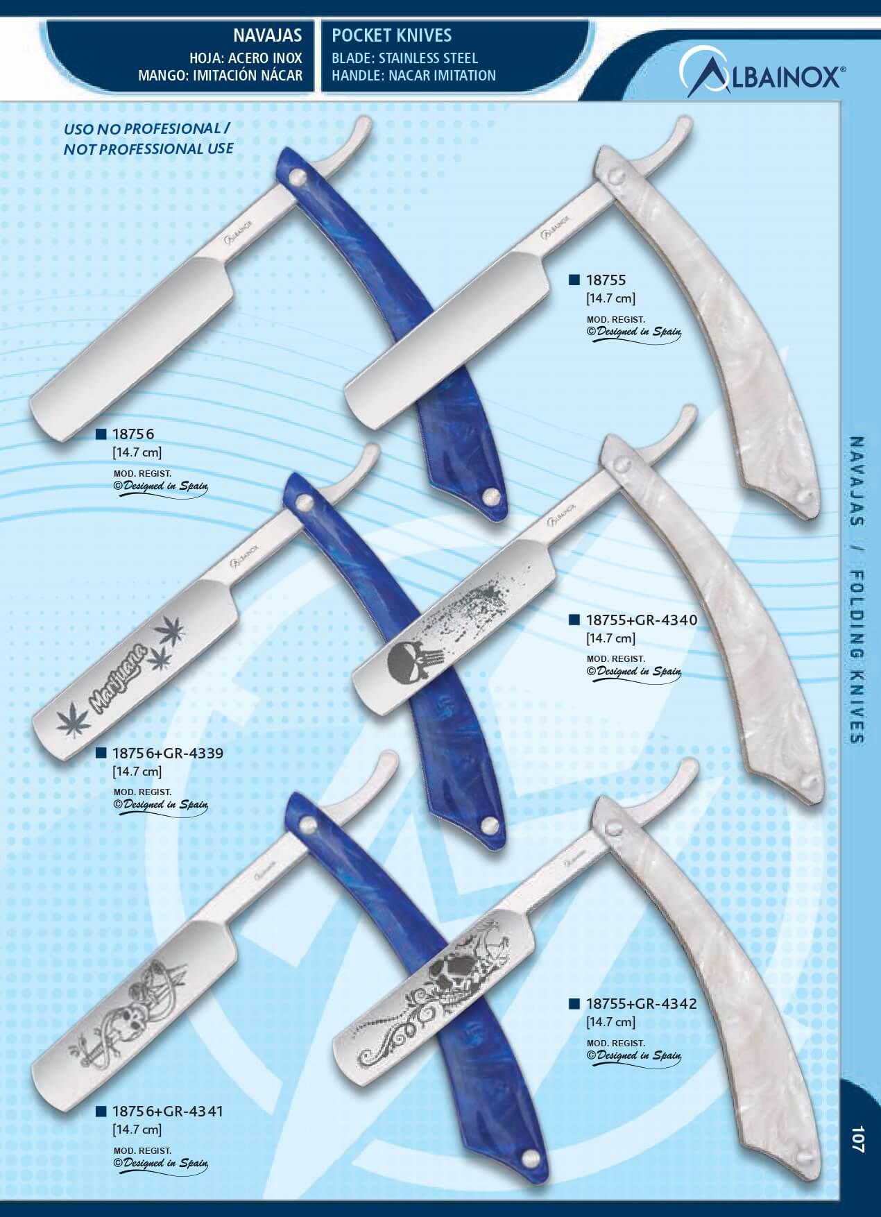 Non-professional Albainox straight razor with 14.7 cm skull blade