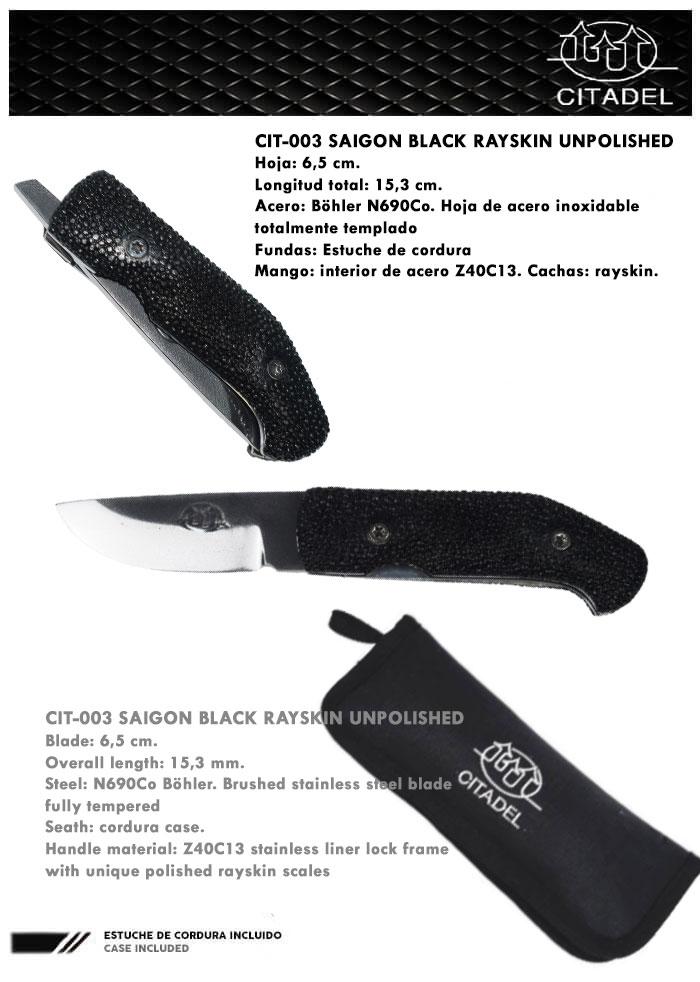 Pocket knive Saigon Black Rayskin Unpolished . Handmade by CITADEL .
