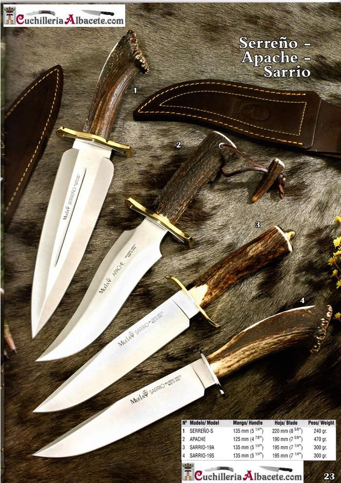 Hunting knives, deer horn handle and brass. SERREÑO-S, APACHE and SARRIO.
