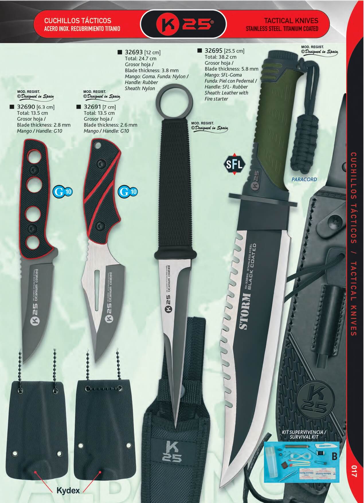 Storm K25 tactical knife with 25.5 cm blade and black SFL handle ...