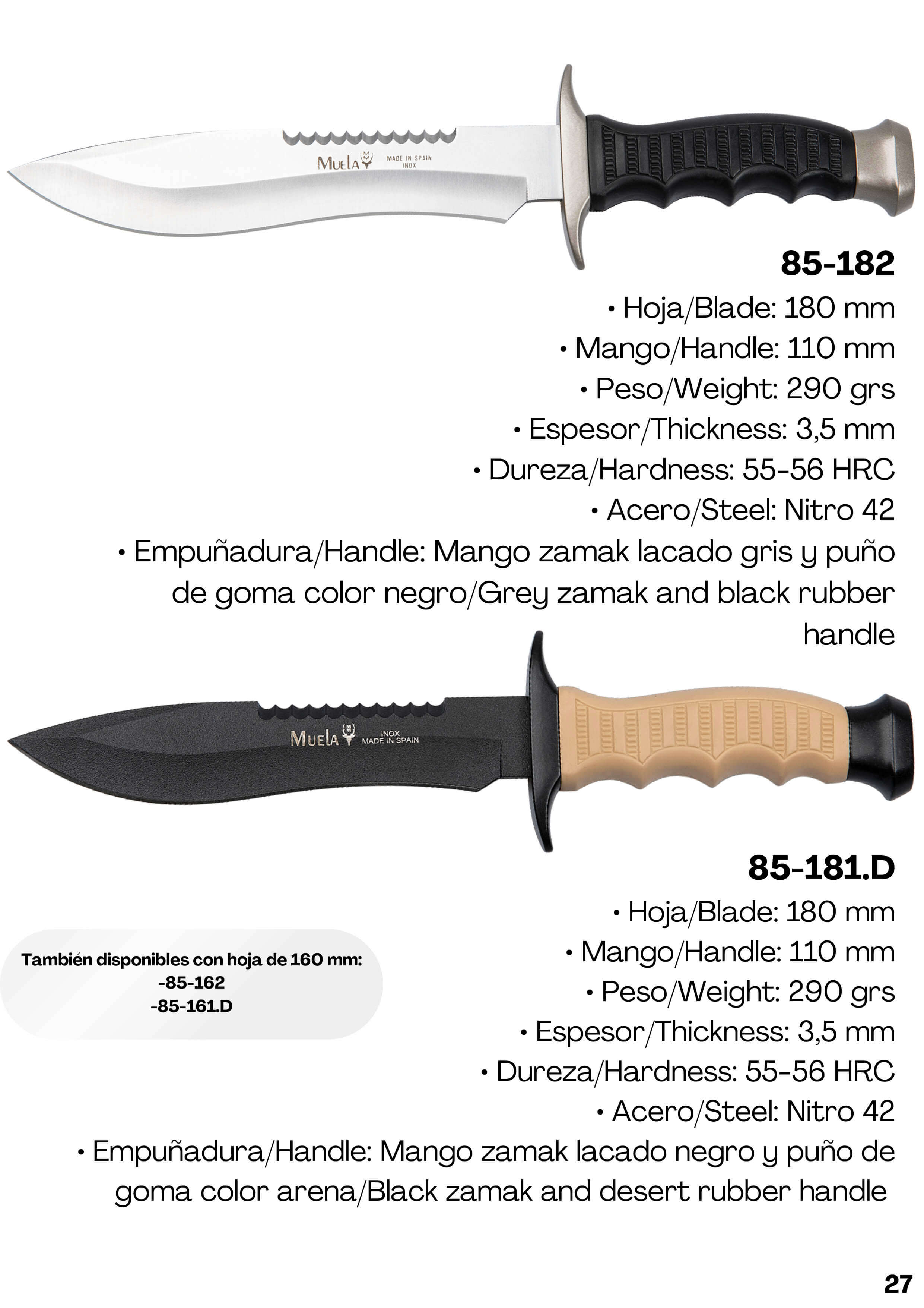 Muela 85-181D knife with a 18 cm black blade and black zamak hand...