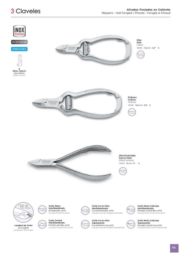 Pince inoxydable manucure acier forgeage à chaud. Pédicure. Pinces à ongles. Ongles incarnés.