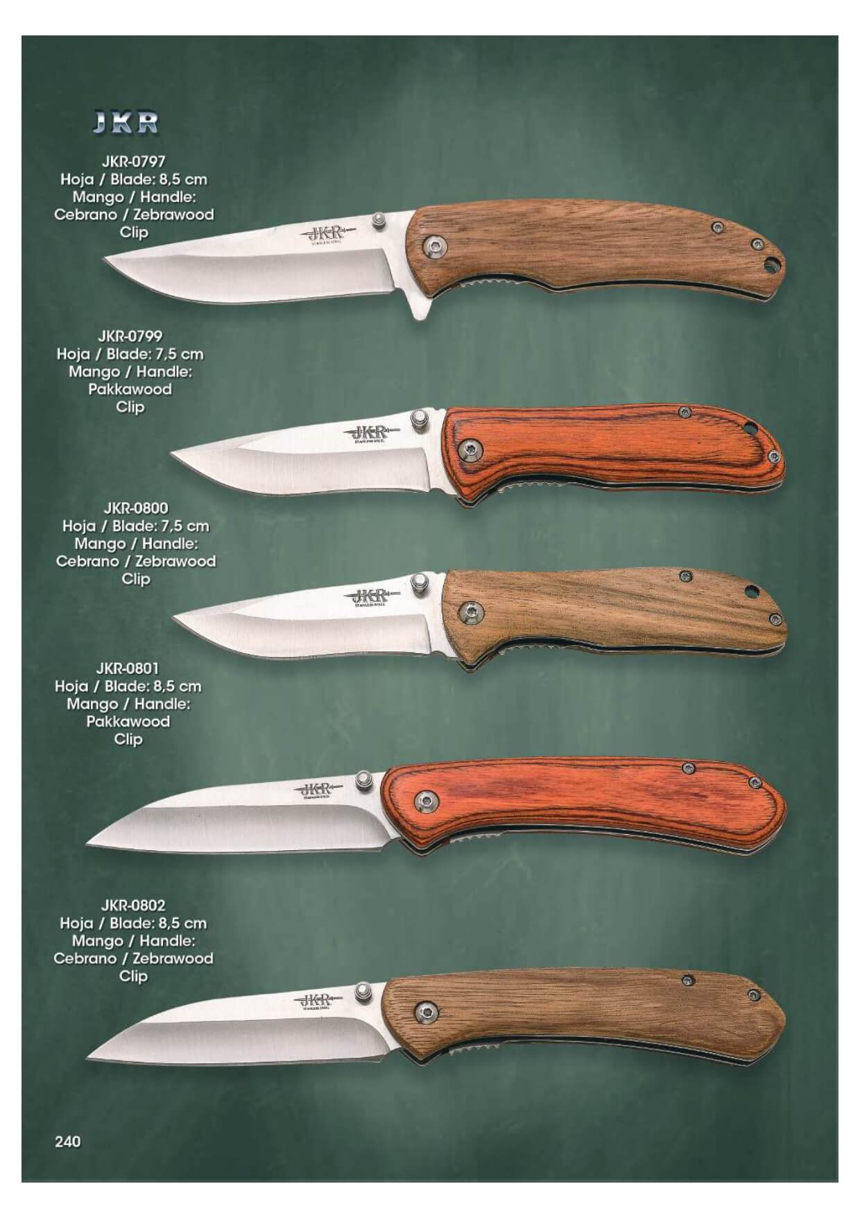 Couteau de poche JKR avec manche en bois de zèbre et lame de 8,5 ...