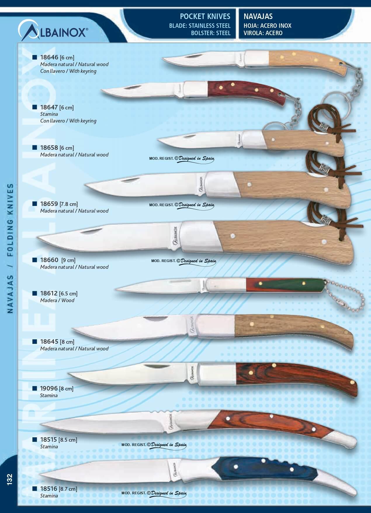 Couteau de poche Albainox avec serrure à piston, manche en bois n...