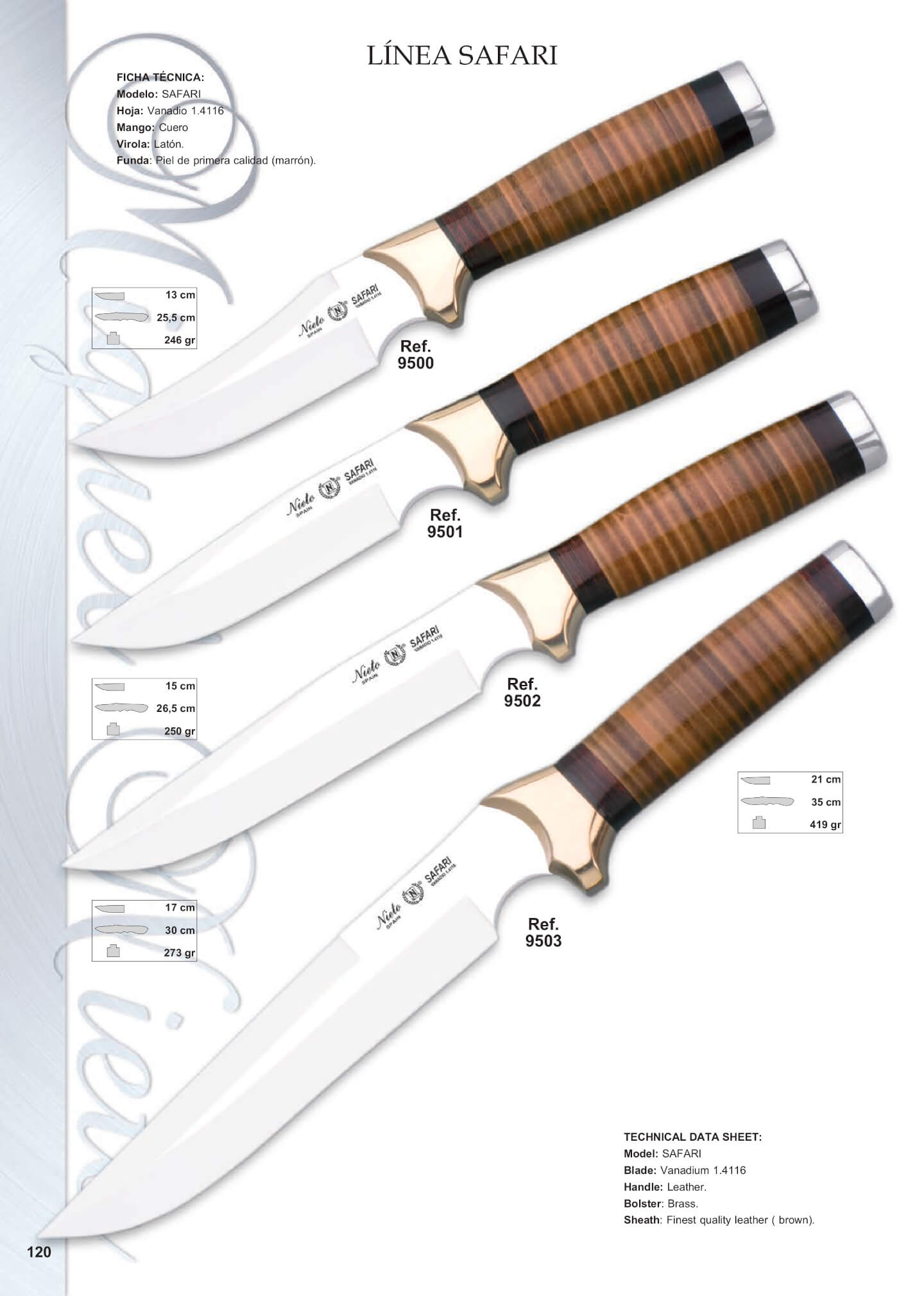 Lame en acier Vanadium 1.4116Poignée en cuir Cuir de qualité supérieure (brun) Sellette d'airain.