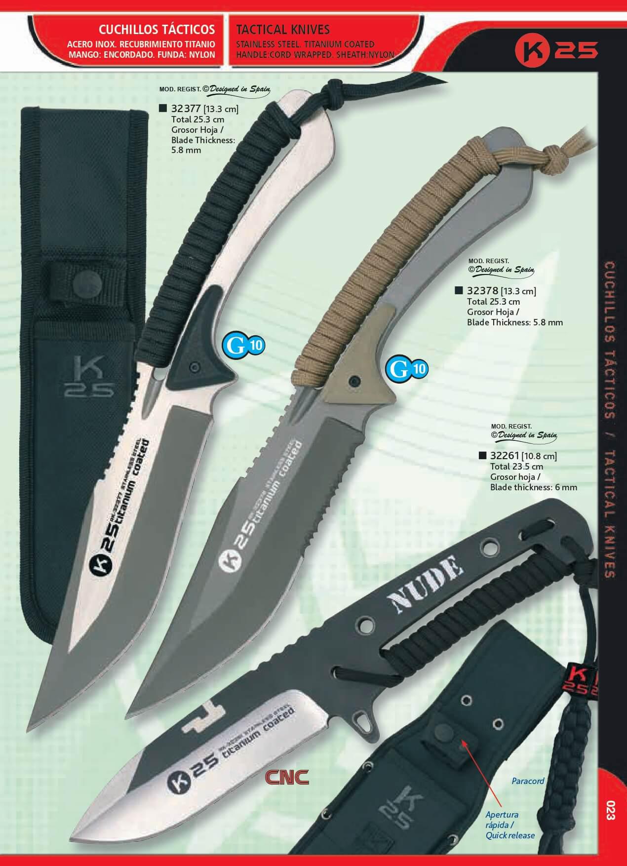 Couteau tactique K25 avec manche cordé couleur coyote et longueur...