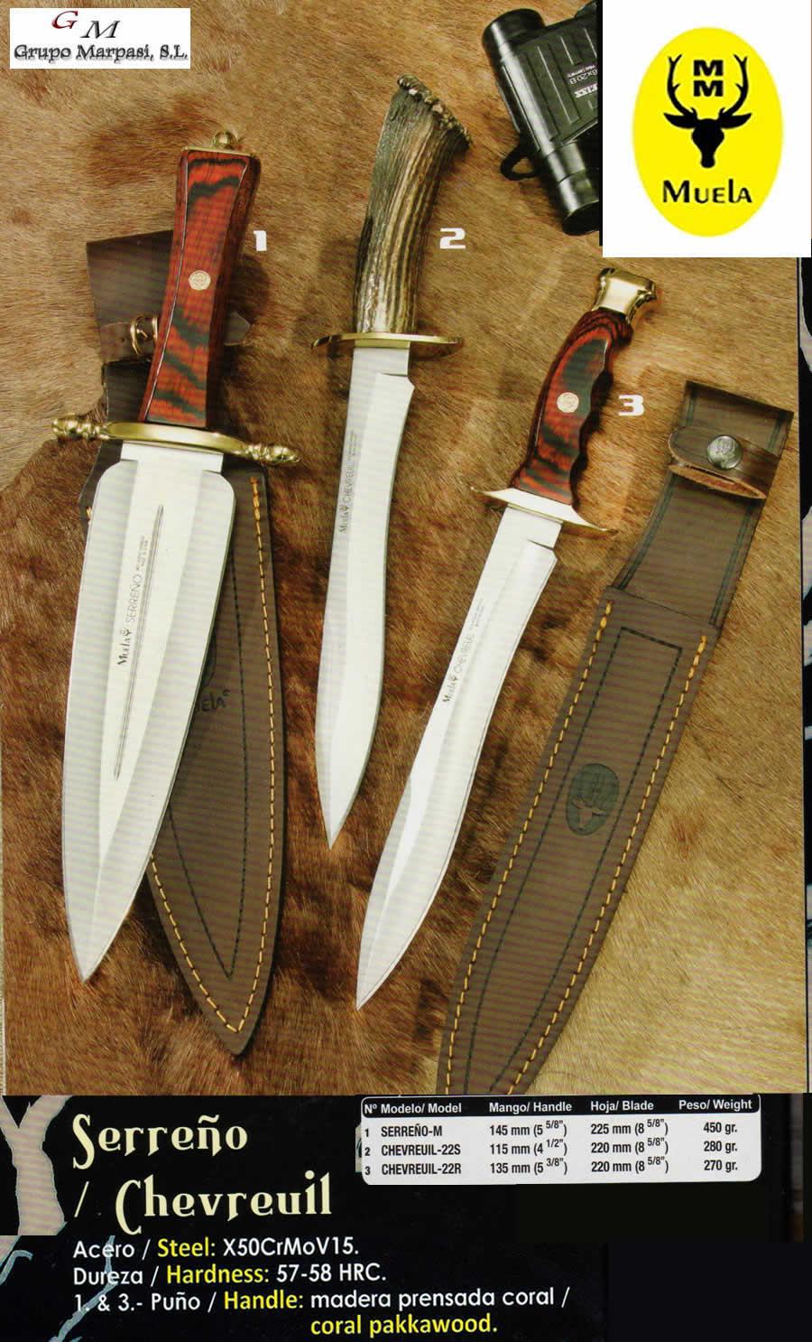 Couteau de finition avec lame en acier X50CrMoV15 de 22 cm et manche en corne de cerf avec rosace de 13,5 cm. Poids 280 gr.