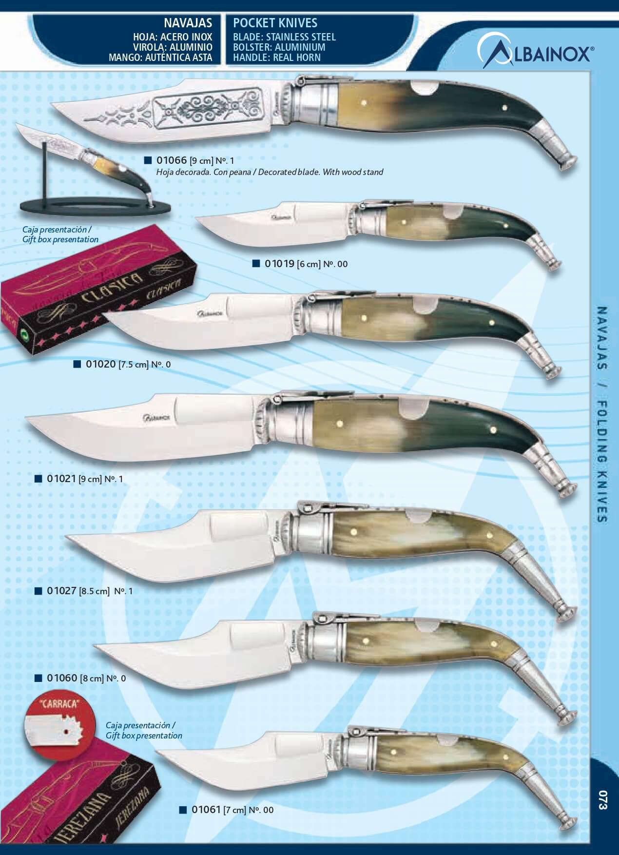 Lame en acier inoxydable. Poignée de taureau corne.