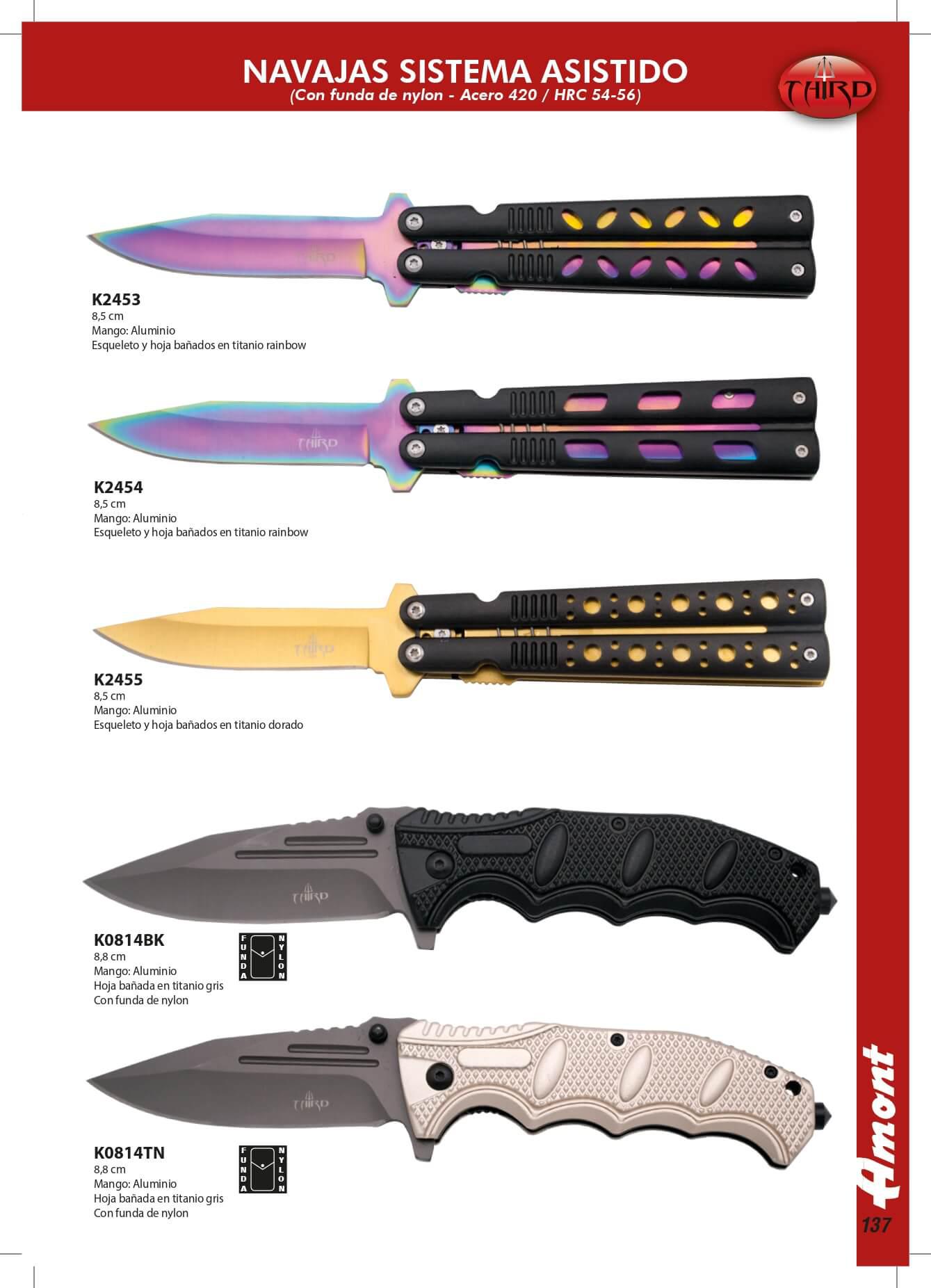 Feuille d'acier 420. HRC 54-56. Longueur de la feuille: 8,8 cm. Comprend une gaine en nylon. Poignée en aluminium