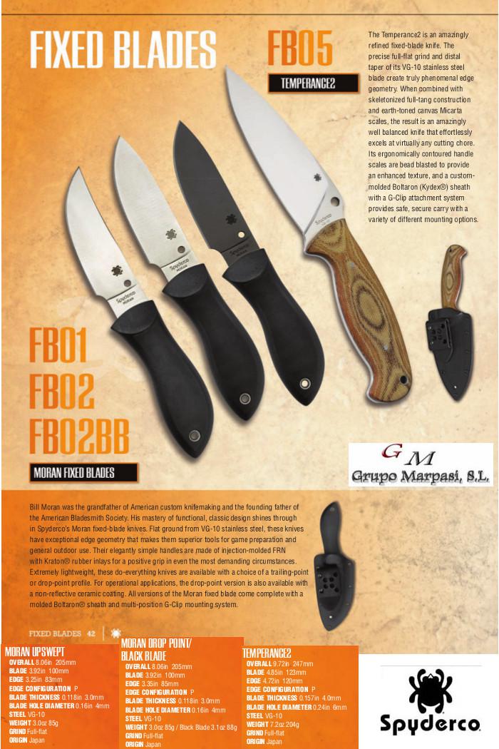 FB05 - Spyderco Temperance2 Micarta PlainEdge.FB01 - Spyderco Bill Moran Fixed Blade PlainEdge.FB02 - Spyderco Bill Moran PlainEdge.FB02BB - Spyderco Bill Moran Black Blade PlainEdge.
