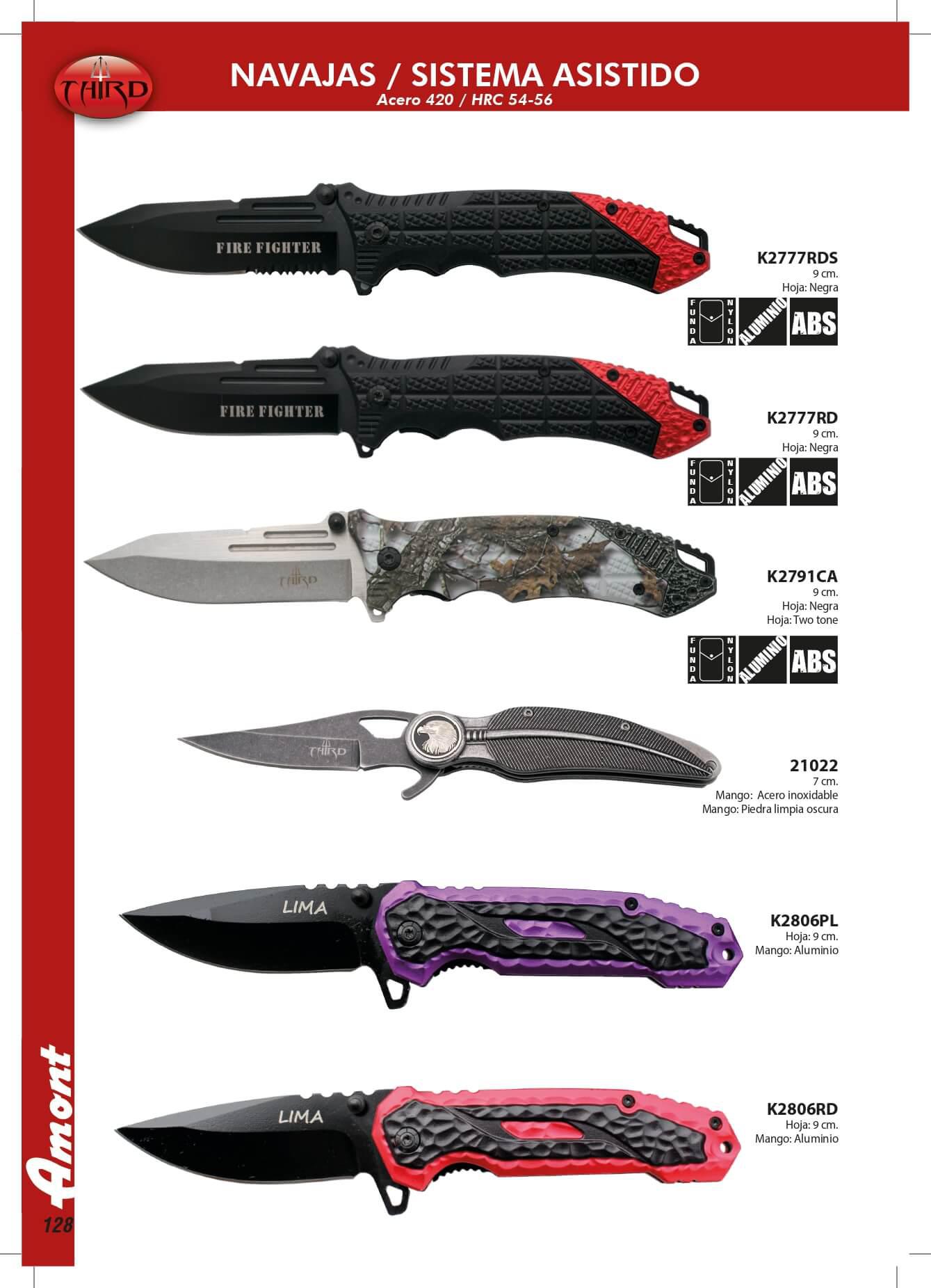 Couteaux tactiques avec système assistée et poignée en aluminium.