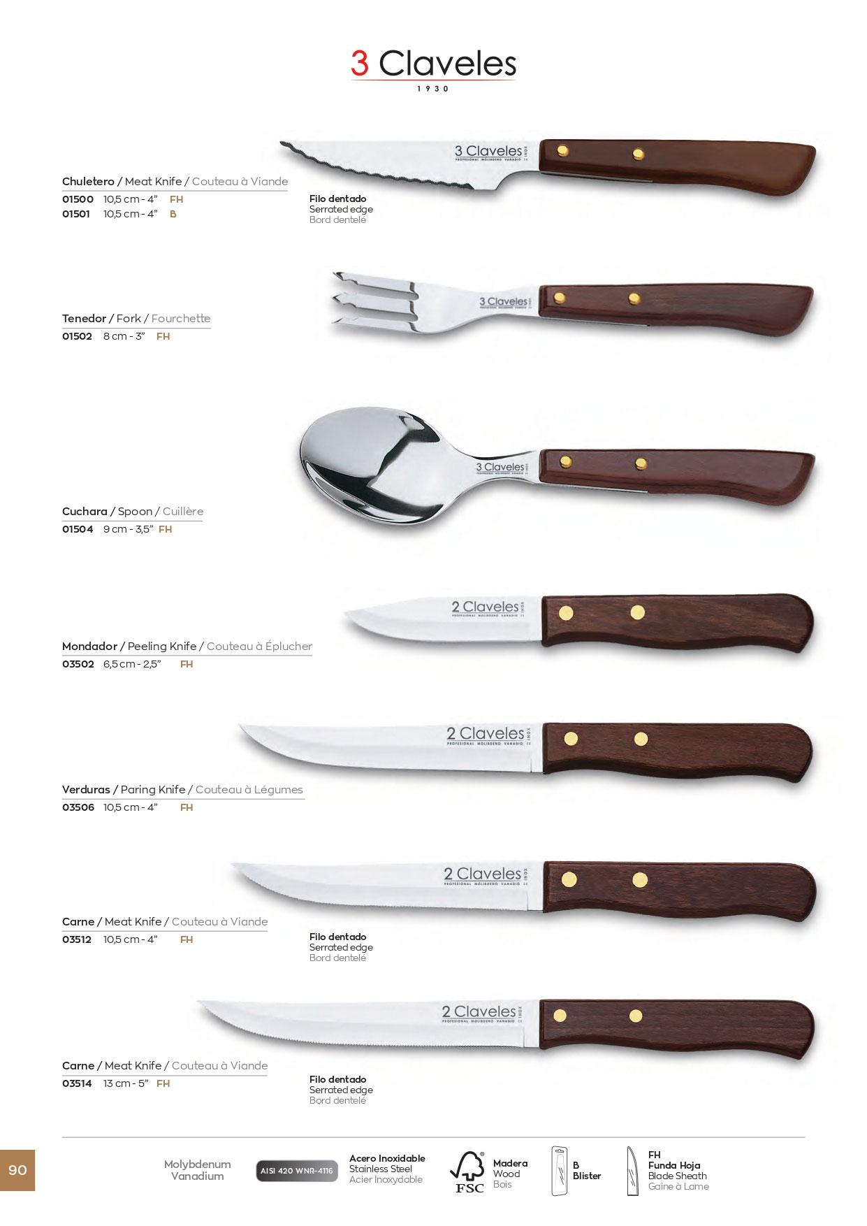 Couteau à steak 10,5 cm avec manche en bois, lot 3 Claveles