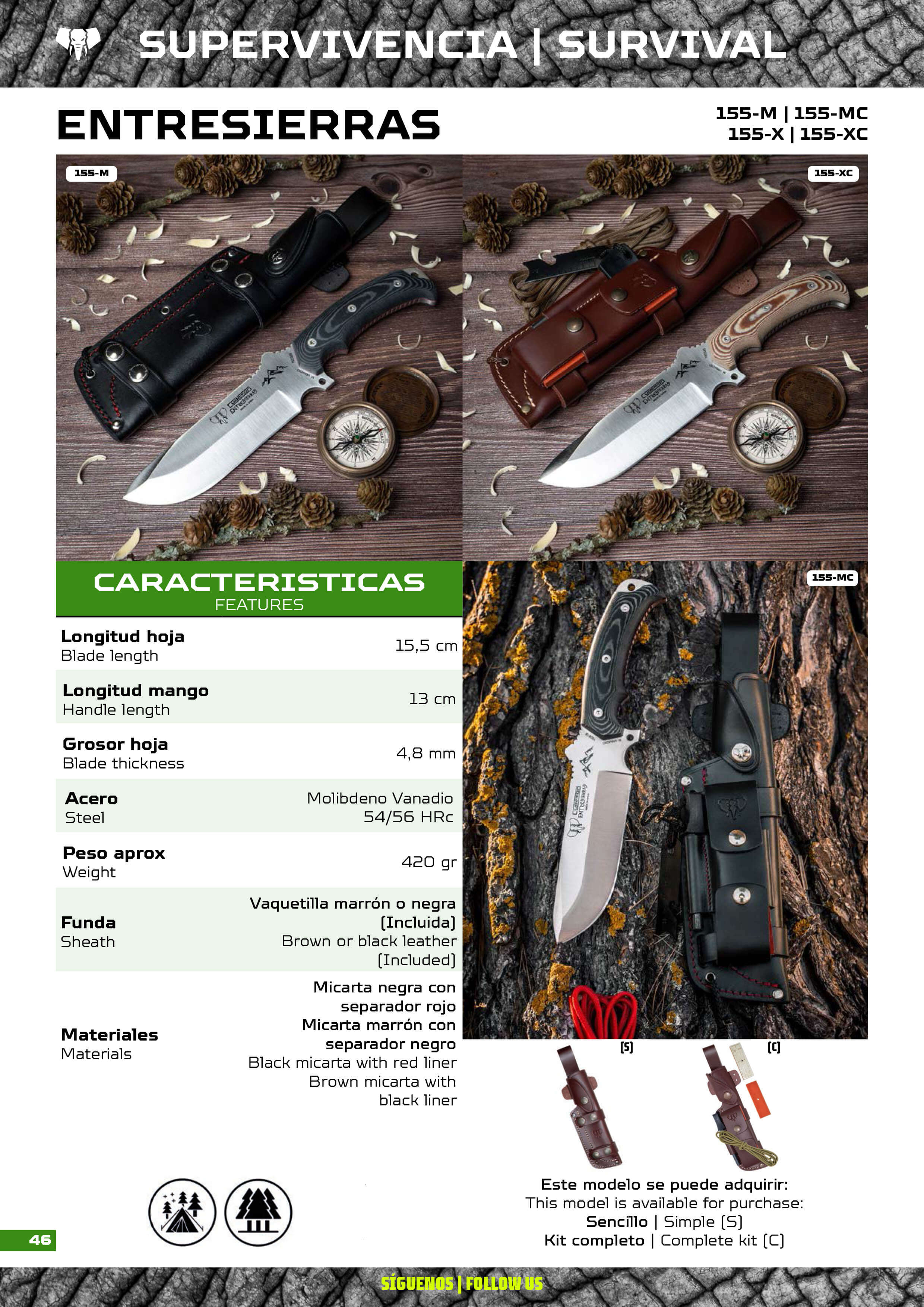 Couteau de survie Cudeman bushcraft, modèle Entresierras.