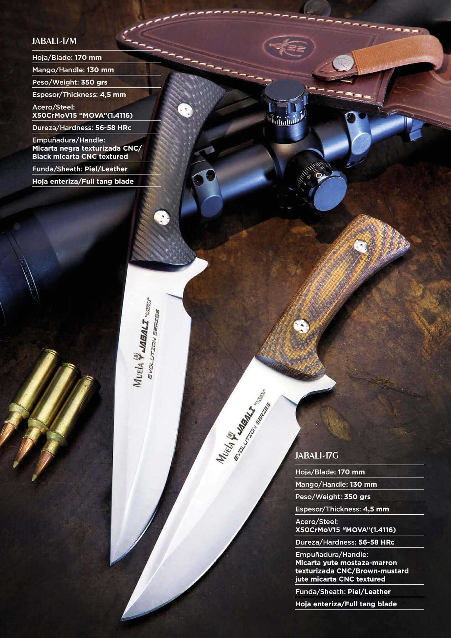 Couteau tactique série Muela Jabalí Evolution. Une version moderne du mythique couteau sanglier de la manufacture Muela avec des manches en micarta et un look plus moderne.