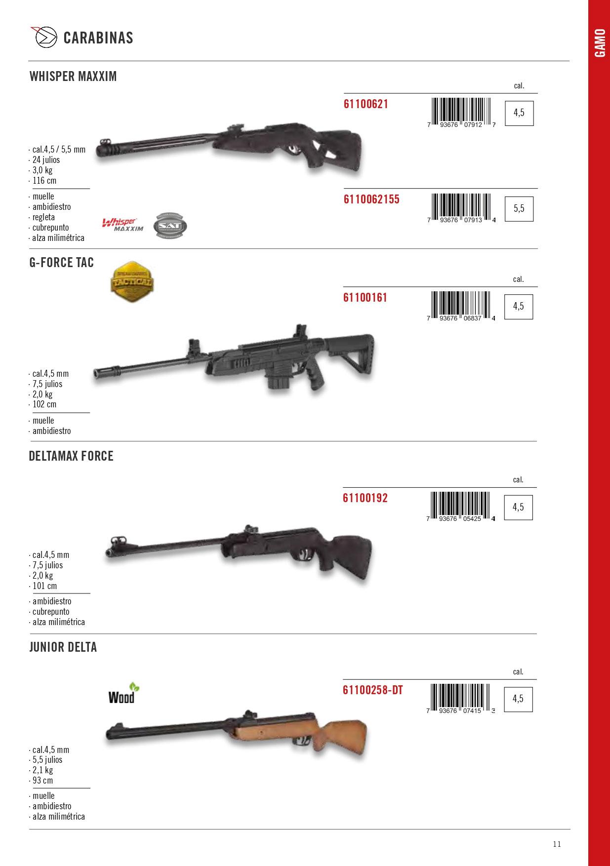 61100161 - Carabine Gamo G-FORCE TAC Calibre 4.5, 2 kg de poids et 210 m / s. 7,5 Joules. 95 cm. Quai. Ambidextre. Augmentation millimétrique.