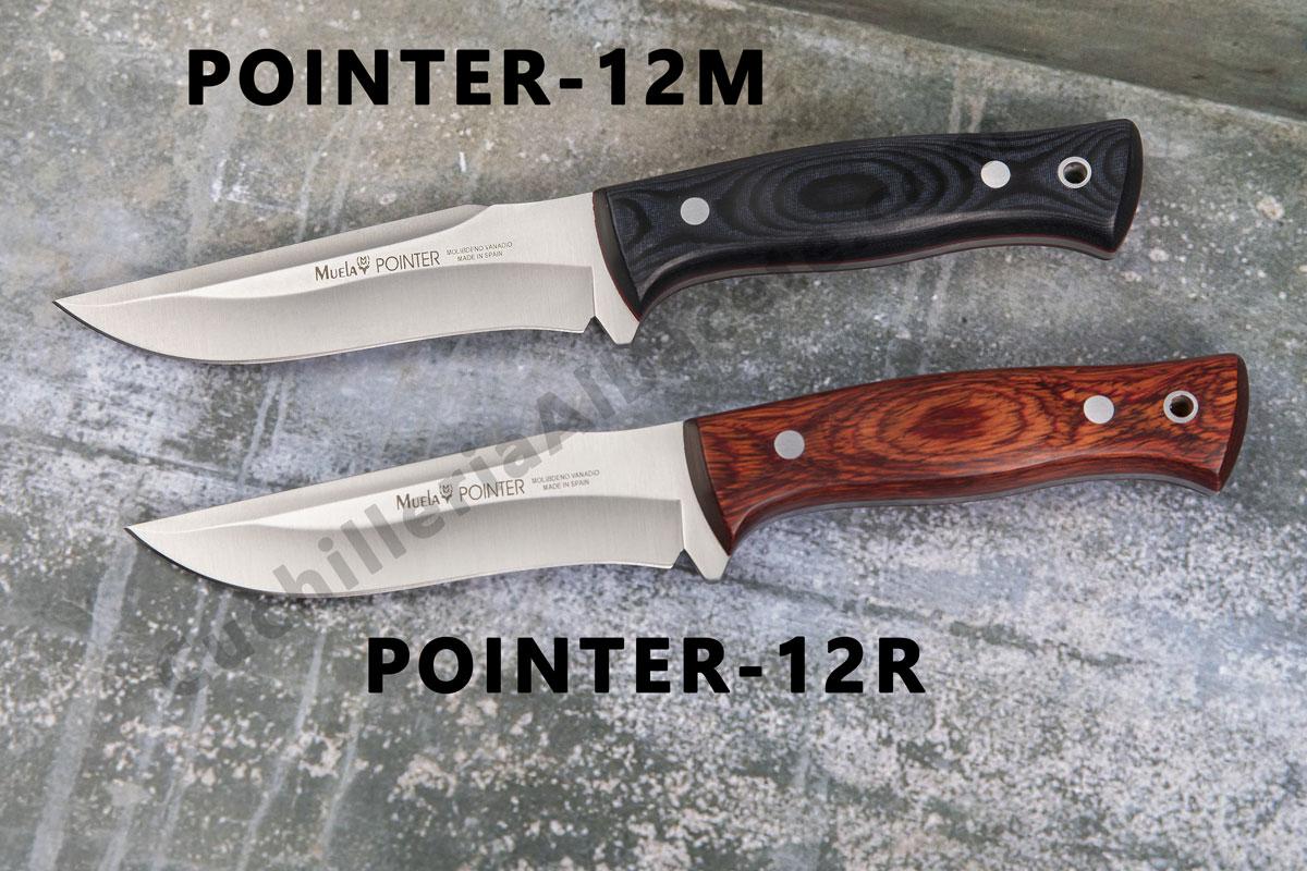 POINTER 12M: Manche mono-pièce en micarta noir / bleu, acier MOVA (1.4116).
