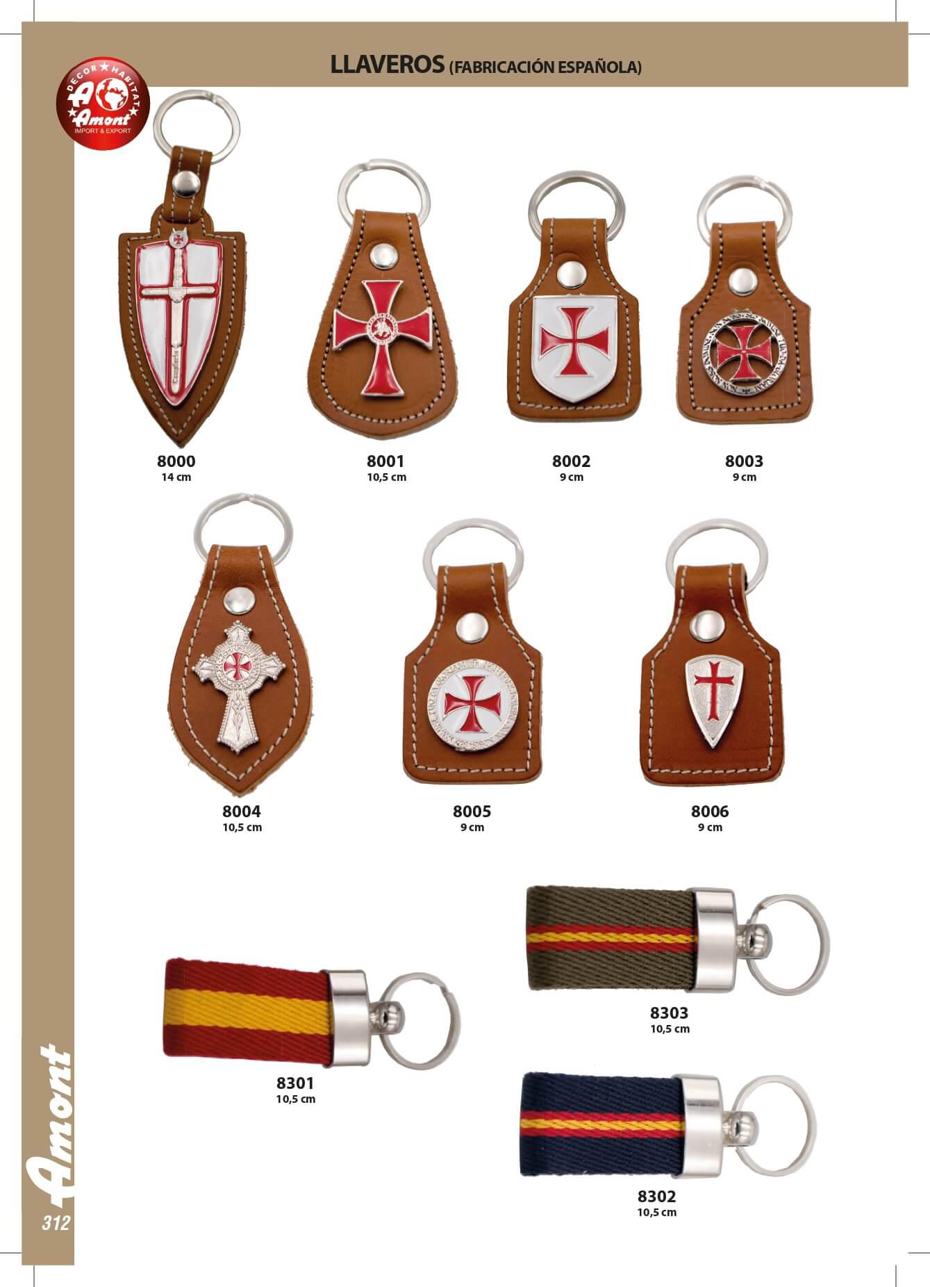 Porte-clés en cuir avec divers ornements. Croix templière, Espagne.
