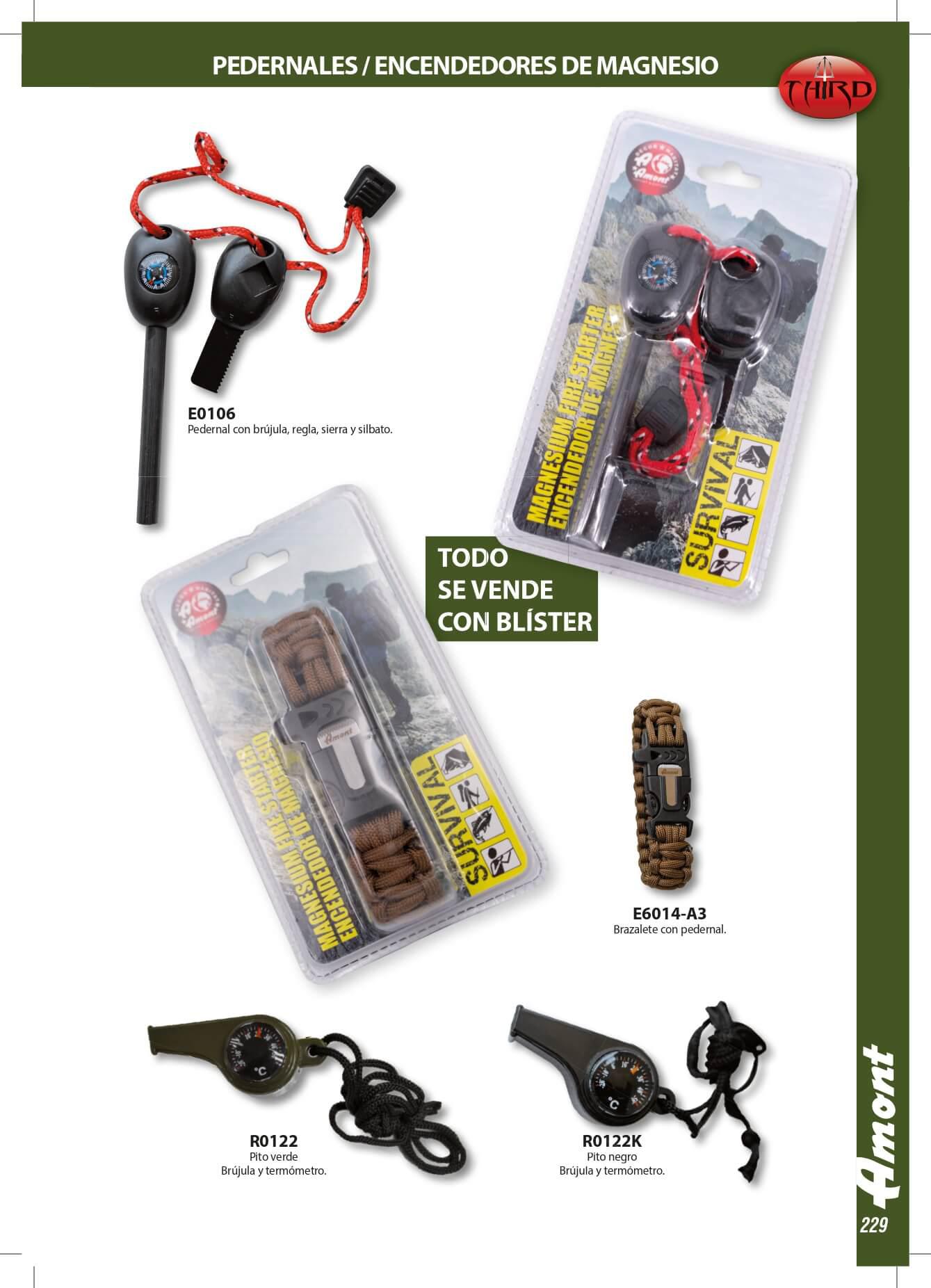 Silex ou des briquets de magnésium et de sifflets.