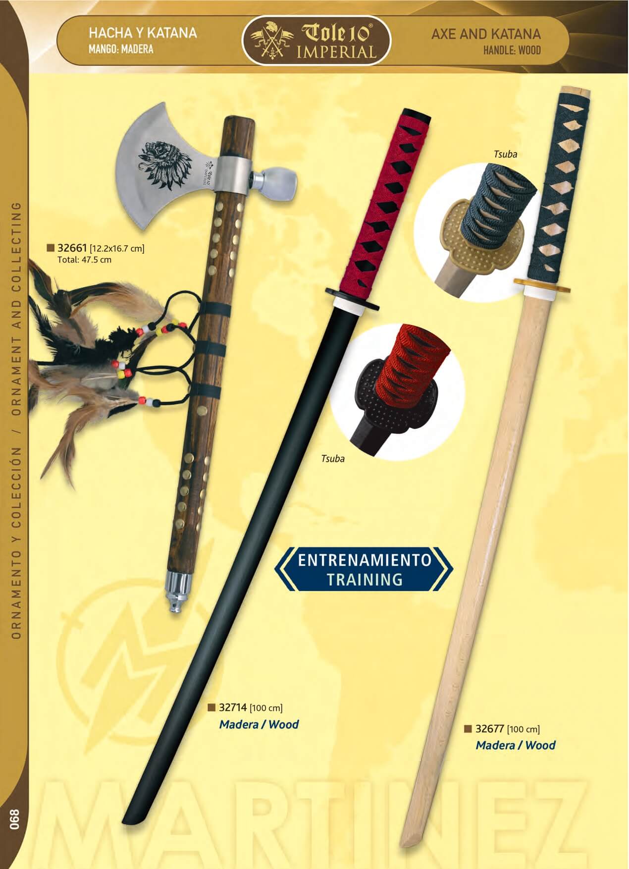 Katana da allenamento in legno con manico nero e tsuba dorata
