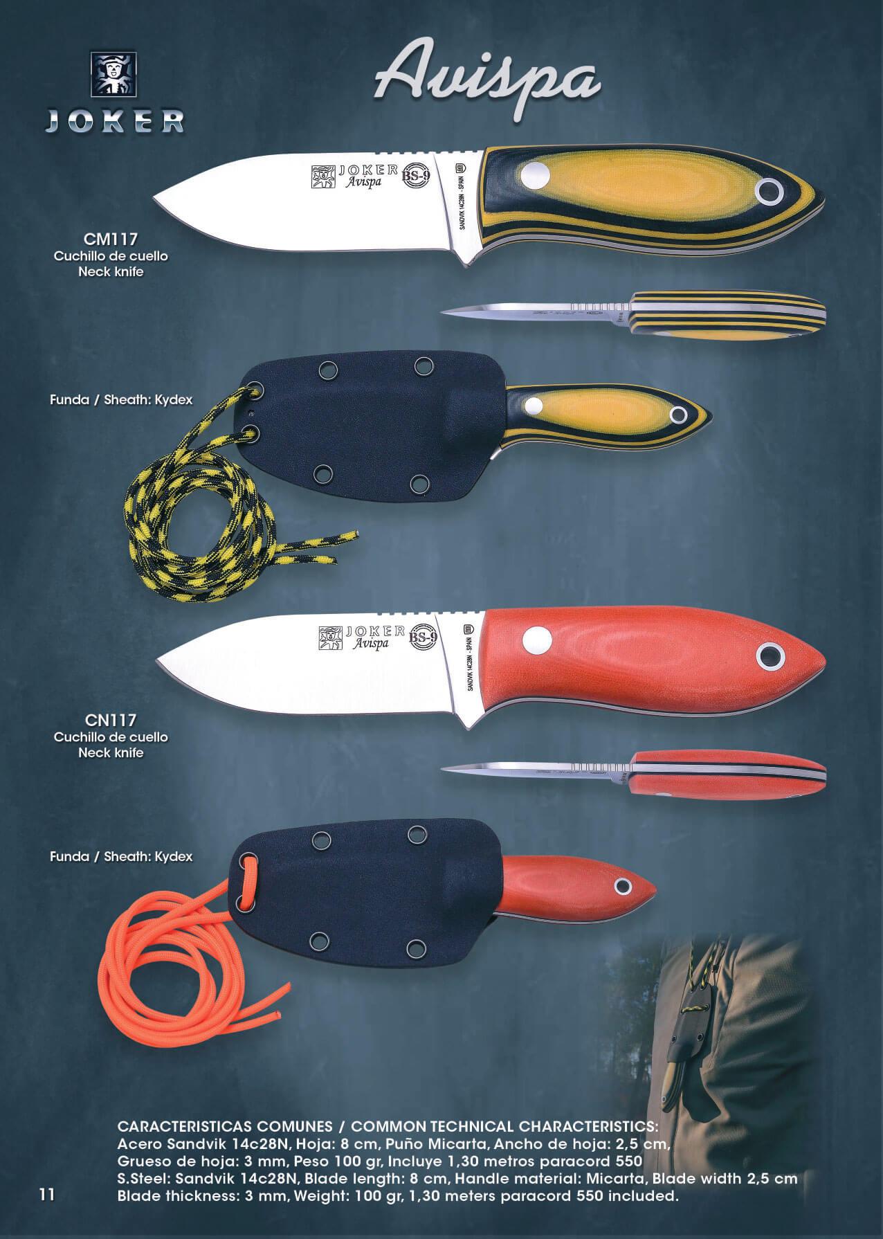 Coltelli BS9 Joker WASCH NECK con lama in acciaio Sandvik 14C28N, spessore di 2,7 mm e 1,3 metri di paracord.
