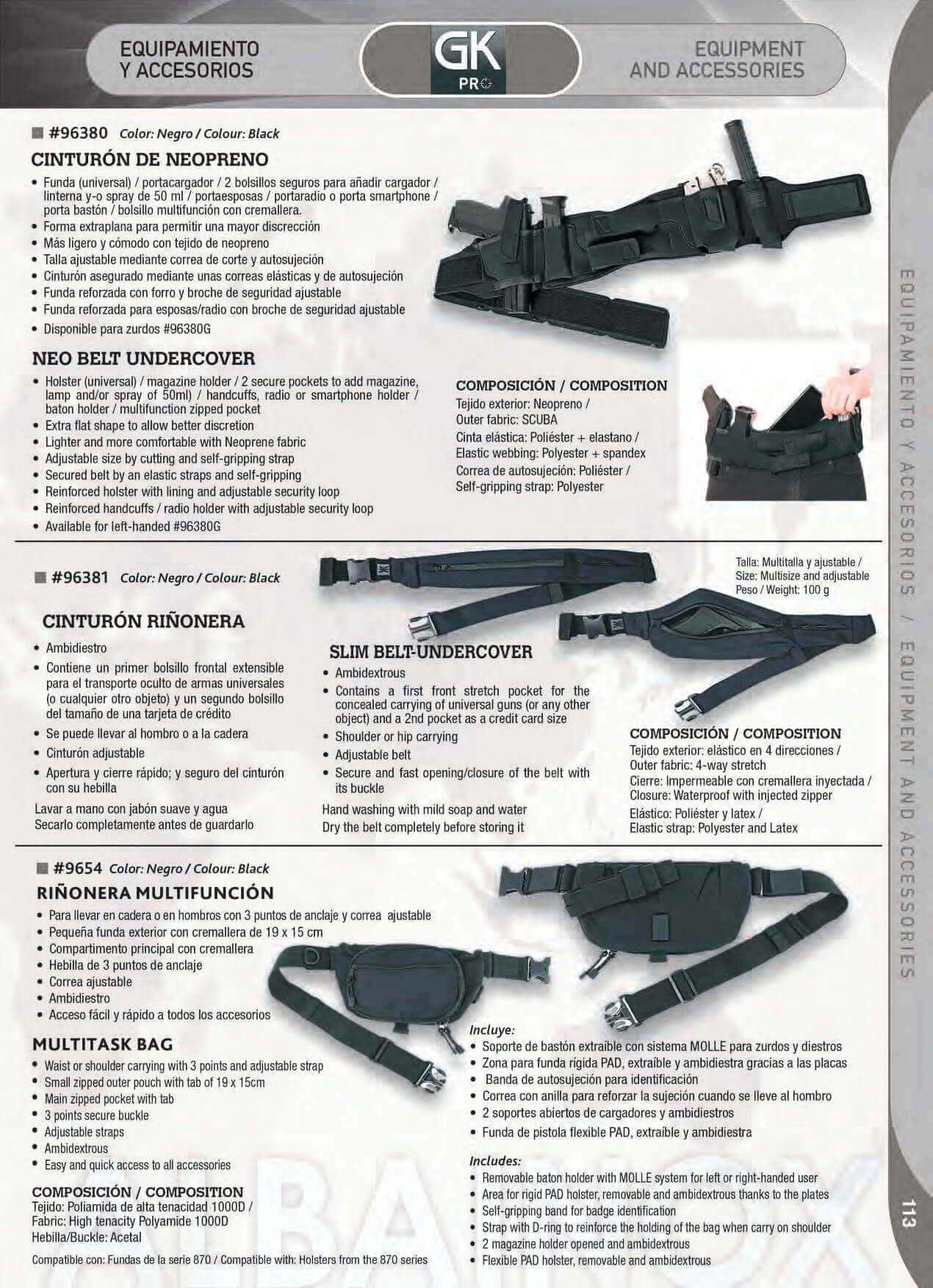 Cintura GK in neoprene nero per armi automatiche e accessori