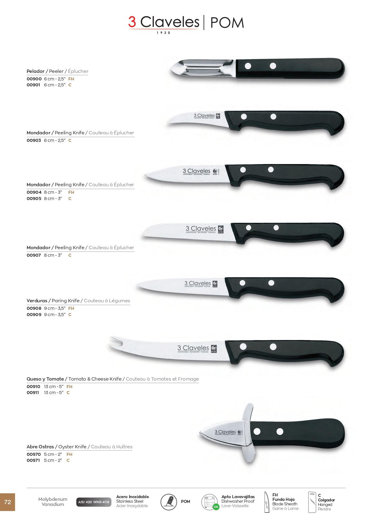 cuchillo mondador 8 cm mango de pom 3 Claveles