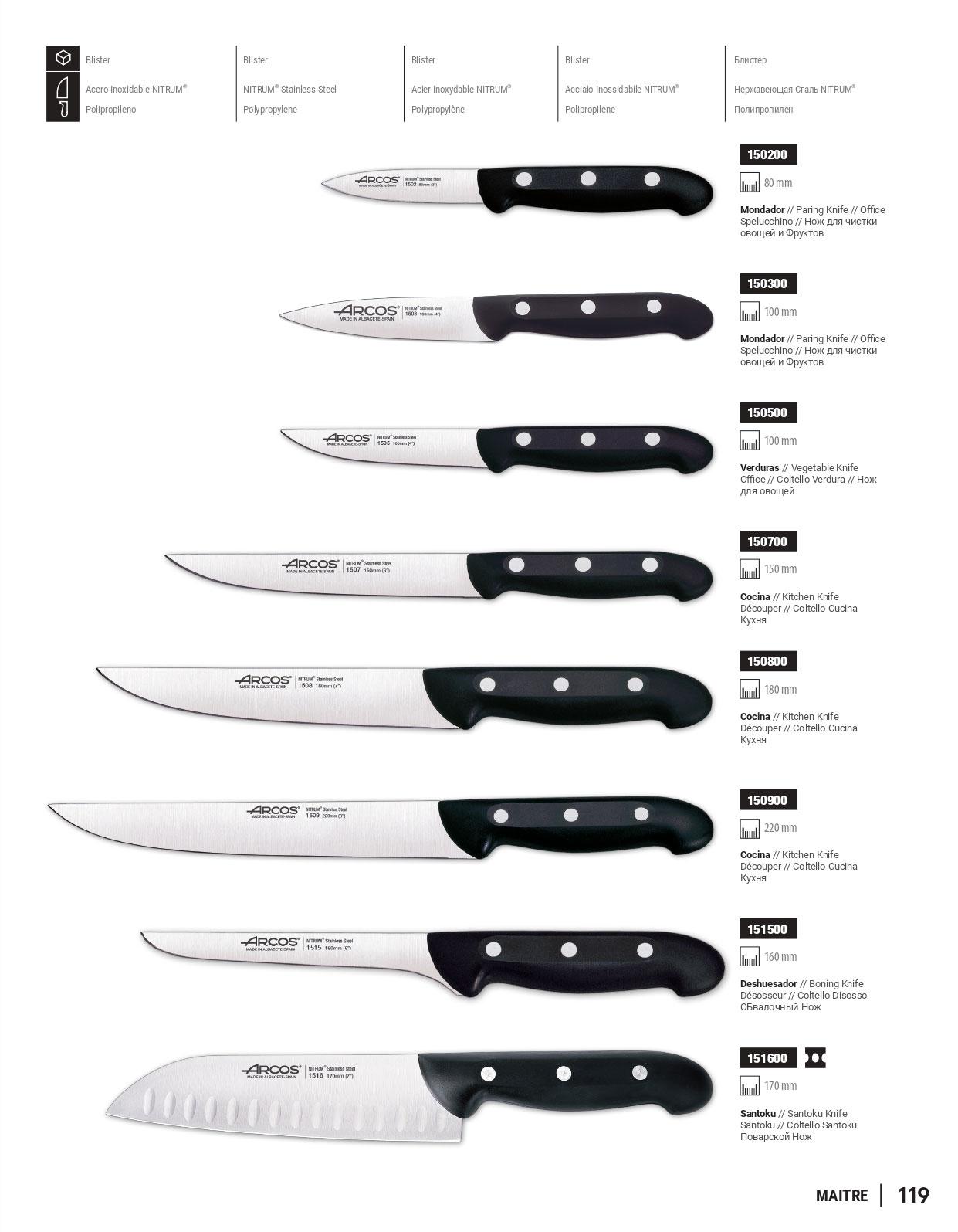 Coltello da cucina Arcos Maitre con manico in polipropilene nero ...
