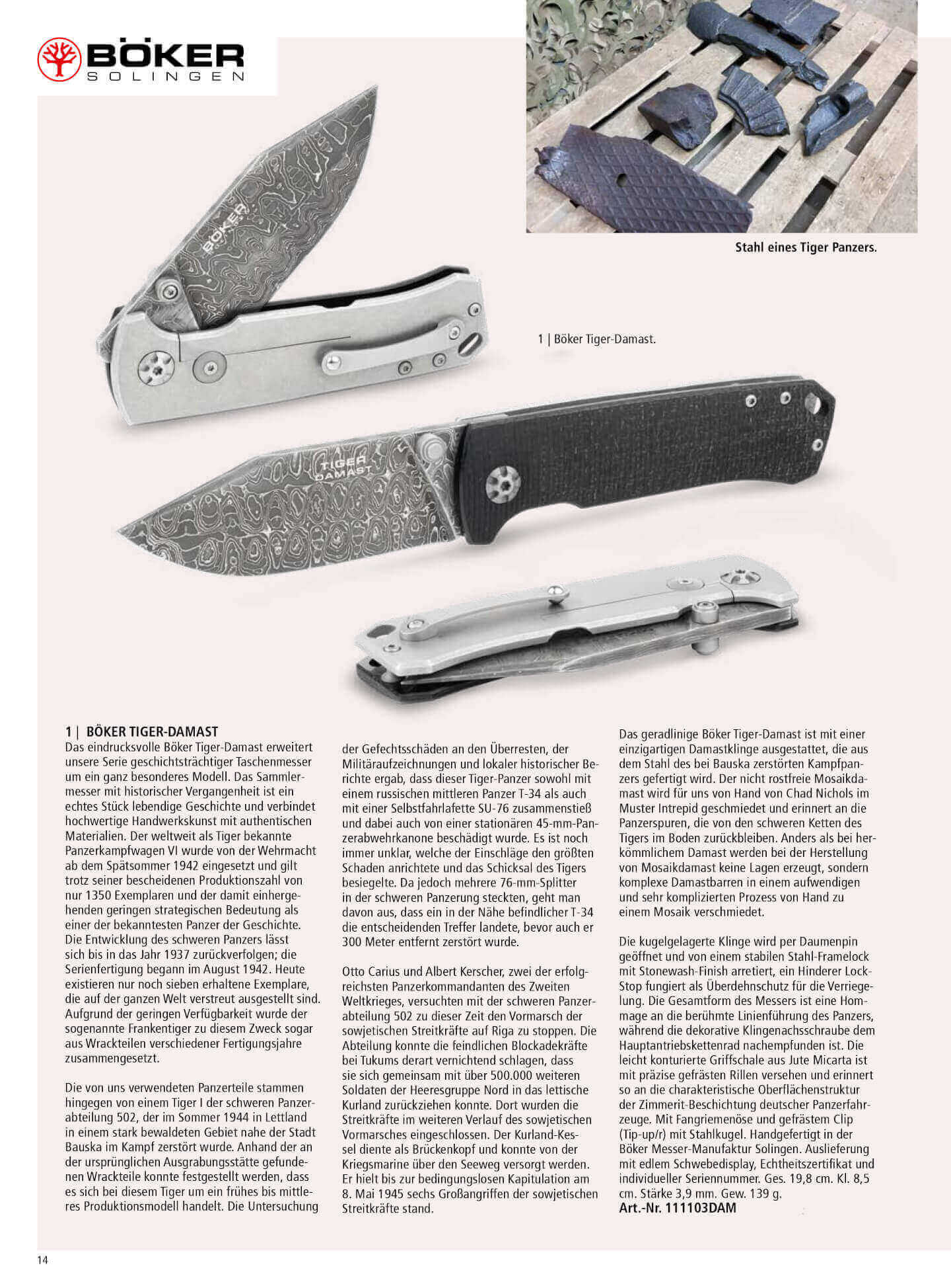 Il coltello damascato Tiger è un robusto coltello con lama in acciaio damasco da 8,5 cm e manico in micarta e chiusura a framlock realizzata in resistente acciaio con finitura stone washed. Un coltello da collezione prodotto a Solingen.