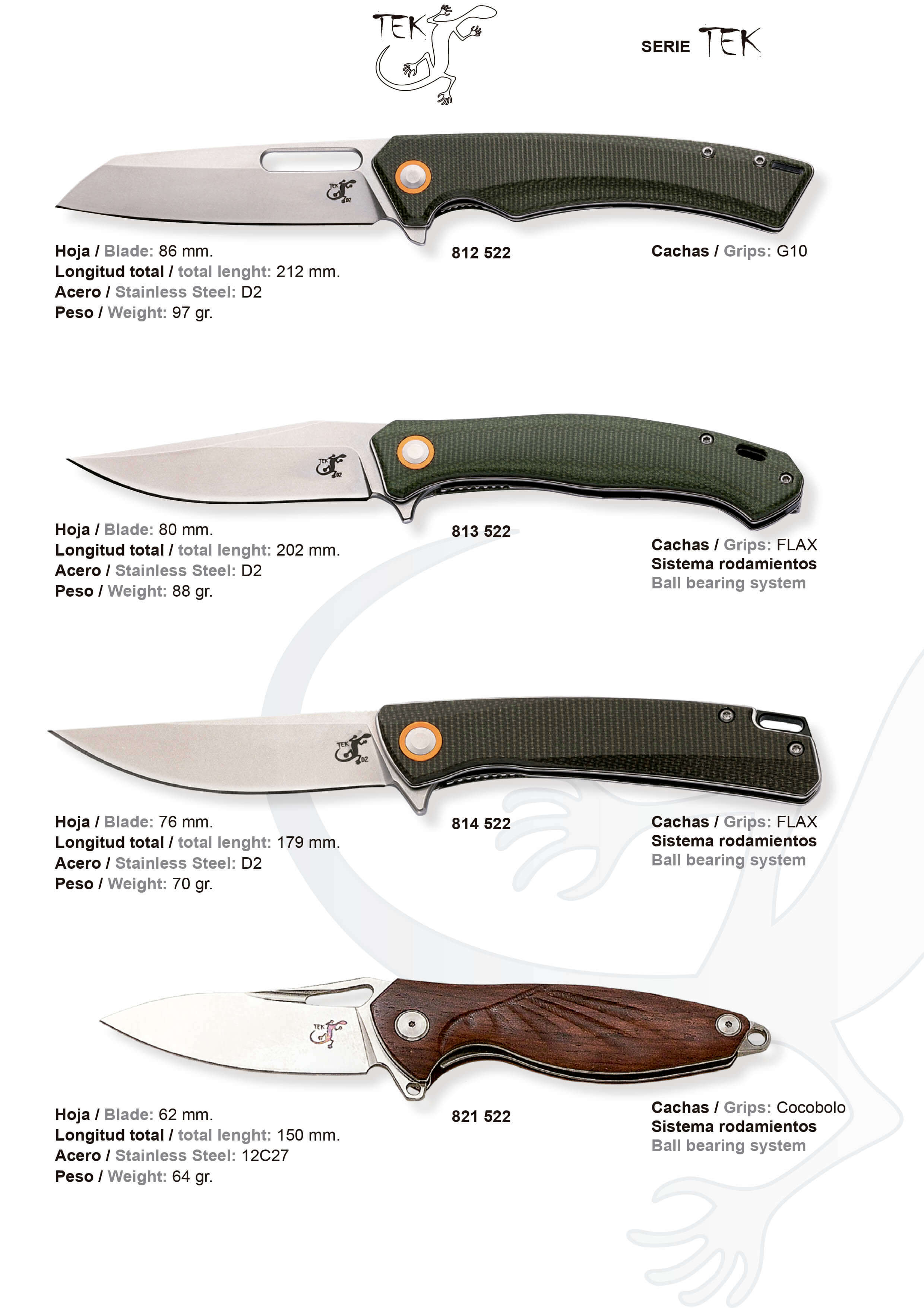 Composta da cinque coltellinos tattici, due dei quali con acciaio VG-10 67 strati e gli altri tre con acciaio Cocobolo. Inoltre, l'ultimo coltello di questa collezione è dotato di un fodero per la conservazione.