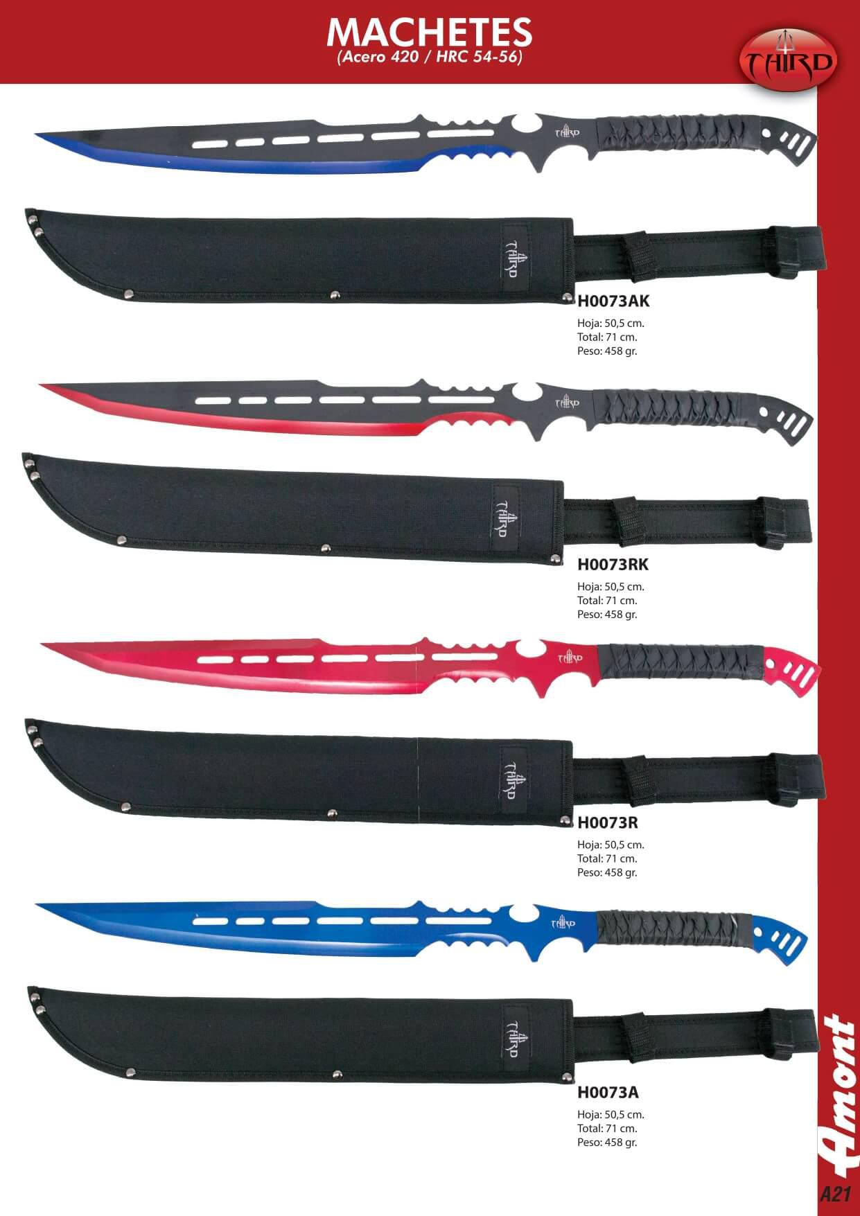 Machete con lama in acciaio 420 lunga 50,5 cm. Manico nero e fodero in nylon.