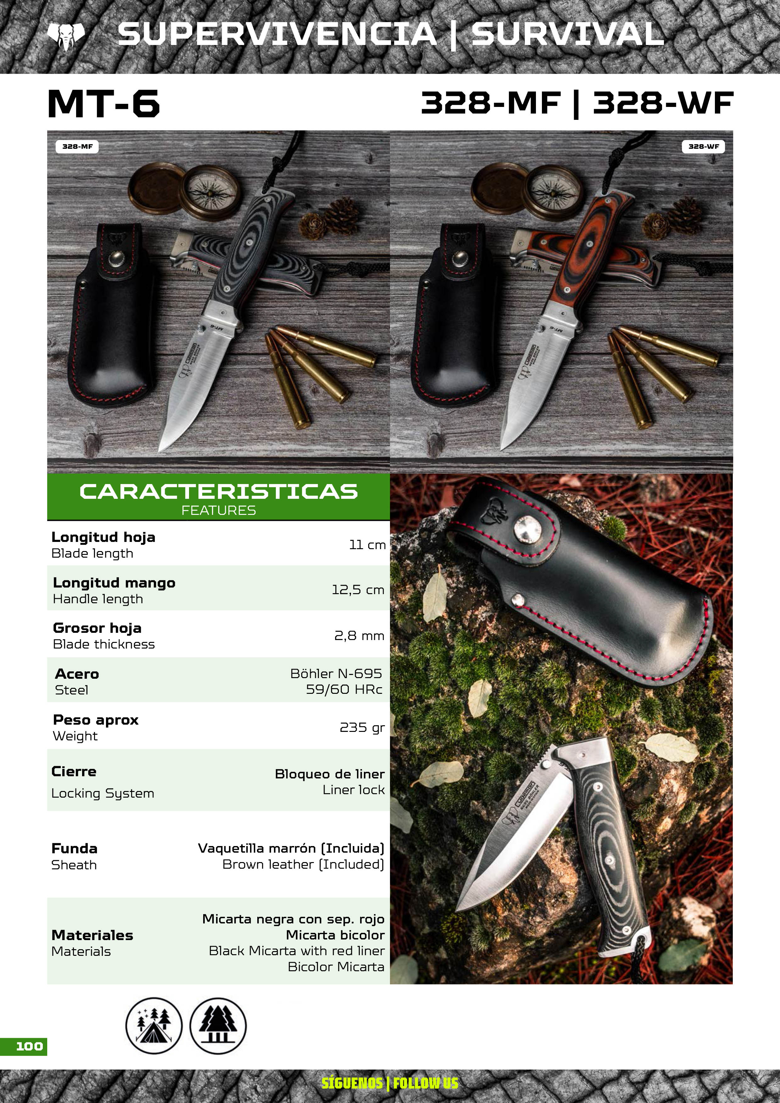 Coltellino Cudeman MT6 con lama in acciaio Böhler N695, con punta drop-point. Manici in micarta, lunghezza lama: 11 cm, lunghezza totale: 23,5 cm. Spessore lama: 4 mm. Larghezza pala 3 cm.
