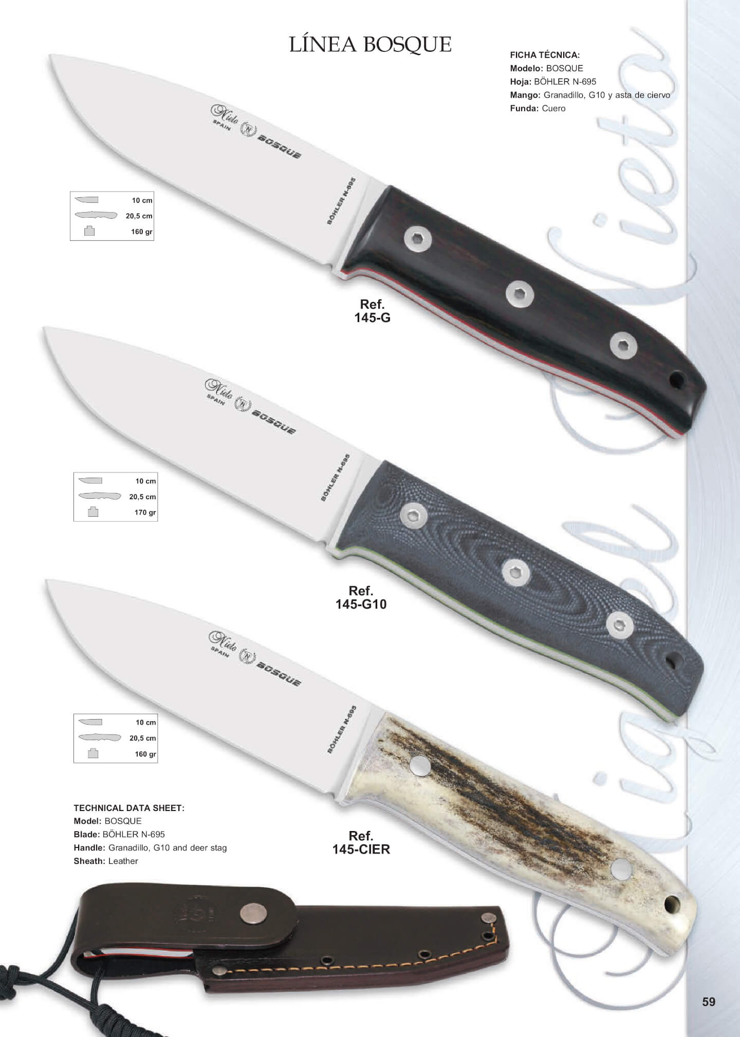 Lama: acciaio Böhler N695. Custodia in pelle inclusa.