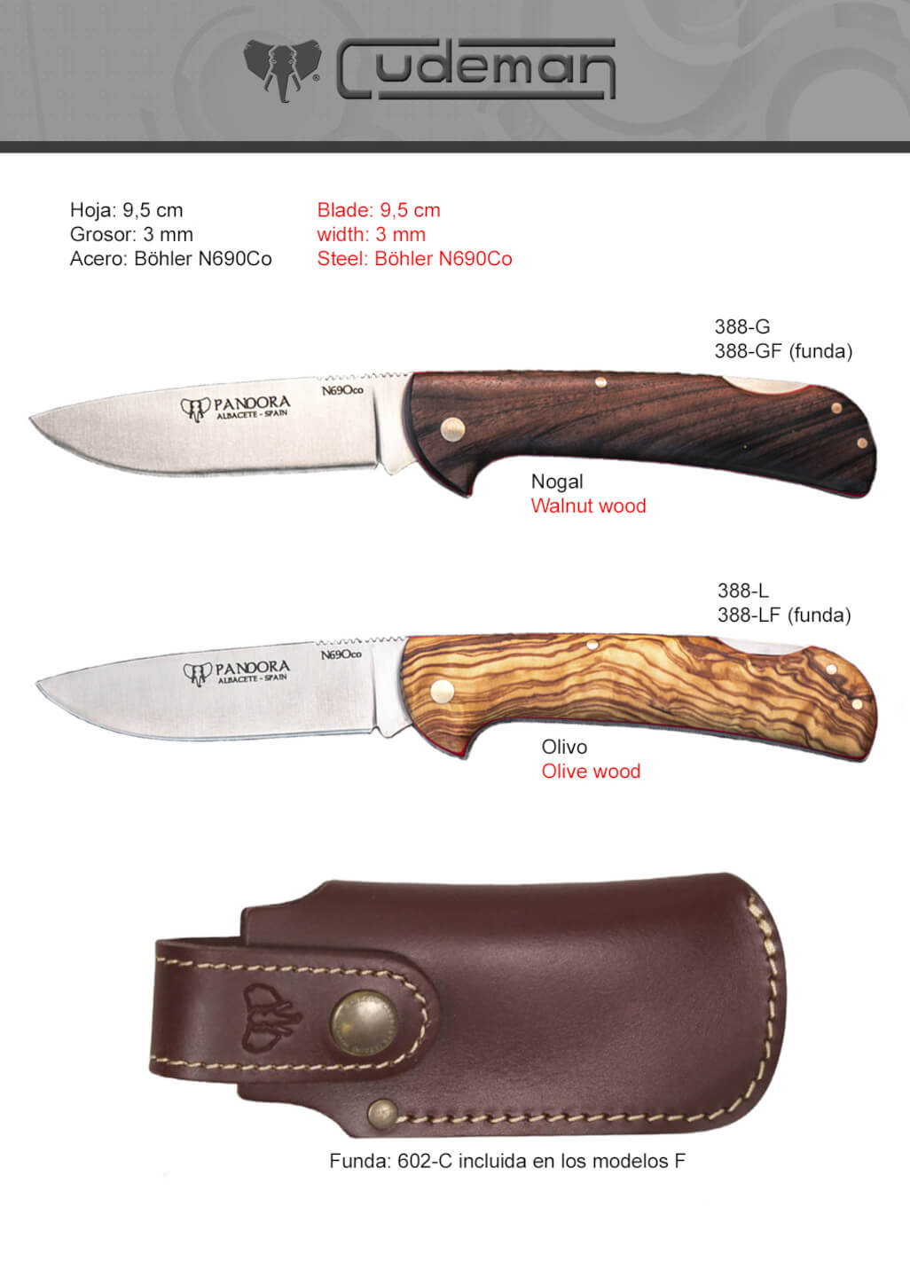 Il nuovo coltello Pandora di Cudeman è disponibile con scaglie in legno di ulivo e legno di noce, con o senza fodero in pelle.